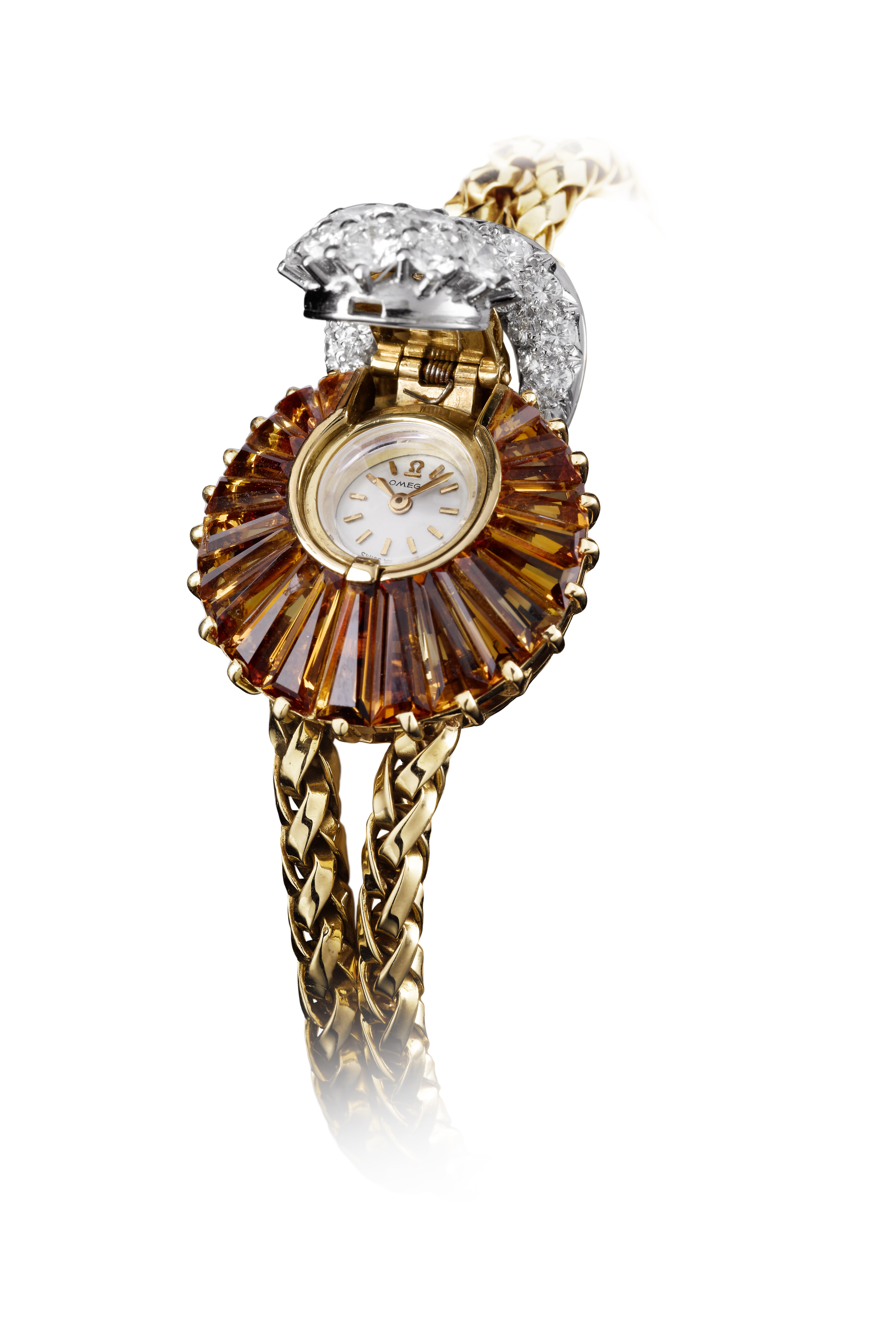 นาฬิกาผู้หญิงของโอเมก้าเริ่มต้นตั้งแต่ Louis Brandt ก่อตั้งแบรนด์ในปี 1848 โดยเป็นนาฬิกาพกขนาดเล็กกว่าของผู้ชาย จากนั้นรุ่นต่อๆมายังได้รับการพัฒนากลไกและประดับประดาอัญมณีและศิลปะชั้นสูงอย่างวิจิตรบรรจง ทั้งยังมีการโปรโมตด้วยภาพวาดของศิลปินชาวฝรั่งเศสผู้มีชื่อเสียง Paul César F. Helleu จนนาฬิกากลายเป็นที่รู้จักอย่างแพร่หลาย