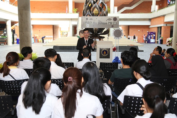เมื่อเร็วๆ นี้ มหาวิทยาลัยมหิดล ได้จัดนิทรรศการ “มหิดลร่วมใจรู้ทันภัยฝุ่นจิ๋ว PM 2.5” ขึ้น ณ ศูนย์การเรียนรู้มหิดล มหาวิทยาลัยมหิดล ศาลายา โดย ผู้ช่วยศาสตราจารย์ เรืออากาศโท ทันตแพทย์ชัชชัย คุณาวิศรุต รักษาการแทนรองอธิการบดีฝ่ายกิจการนักศึกษาและศิษย์เก่าสัมพันธ์ มหาวิทยาลัยมหิดล กล่าวเปิดว่า มหาวิทยาลัยมหิดลได้ตระหนักถึงผลกระทบต่อสุขภาพที่เกิดขึ้นจากภัยฝุ่นจิ๋ว PM 2.5 จึงได้จัดกิจกรรมดังกล่าวขึ้น เพื่อให้นักศึกษาและบุคลากรได้ตระหนักถึงผลกระทบและการป้องกันพิษภัยของฝุ่นจิ๋ว PM 2.5 ซึ่งที่ผ่านมามหาวิทยาลัยมหิดลได้ให้ข้อแนะนำ และแจ้งเตือนนักศึกษา บุคลากร และประชาชนทั่วไปผ่านสื่อออนไลน์ต่างๆ