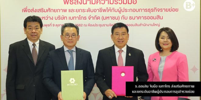 ดร.ชาติชาย พยุหนาวีชัย ผู้อำนวยการธนาคารออมสิน และ นายวสิษฐ แต้ไพสิฐพงษ์ ประธานเจ้าหน้าที่บริหารและกรรมการผู้จัดการใหญ่ บริษัท เบทาโกร จำกัด มหาชน ร่วมลงนามบันทึกข้อตกลงความร่วมมือ เพื่อส่งเสริมศักยภาพและยกระดับอาชีพให้กับผู้ประกอบการธุรกิจรายย่อย