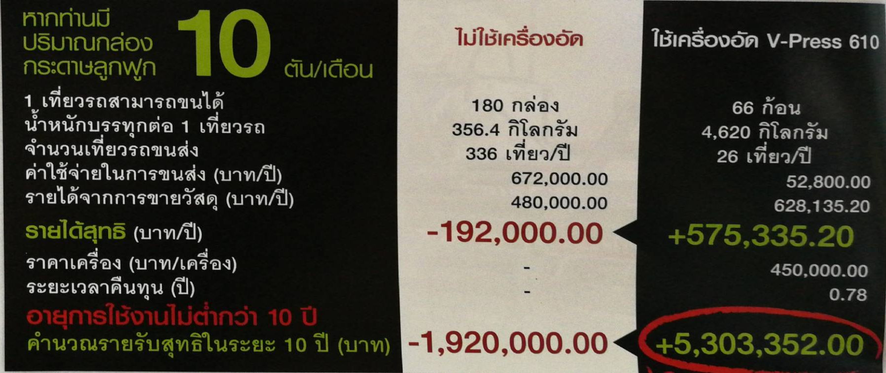 3. Higher Return Rate : วัสดุที่ผ่านการอัดก้อนมาแล้วสามารถนำไปขายต่อได้มีมูลค่าที่สูงกว่า
