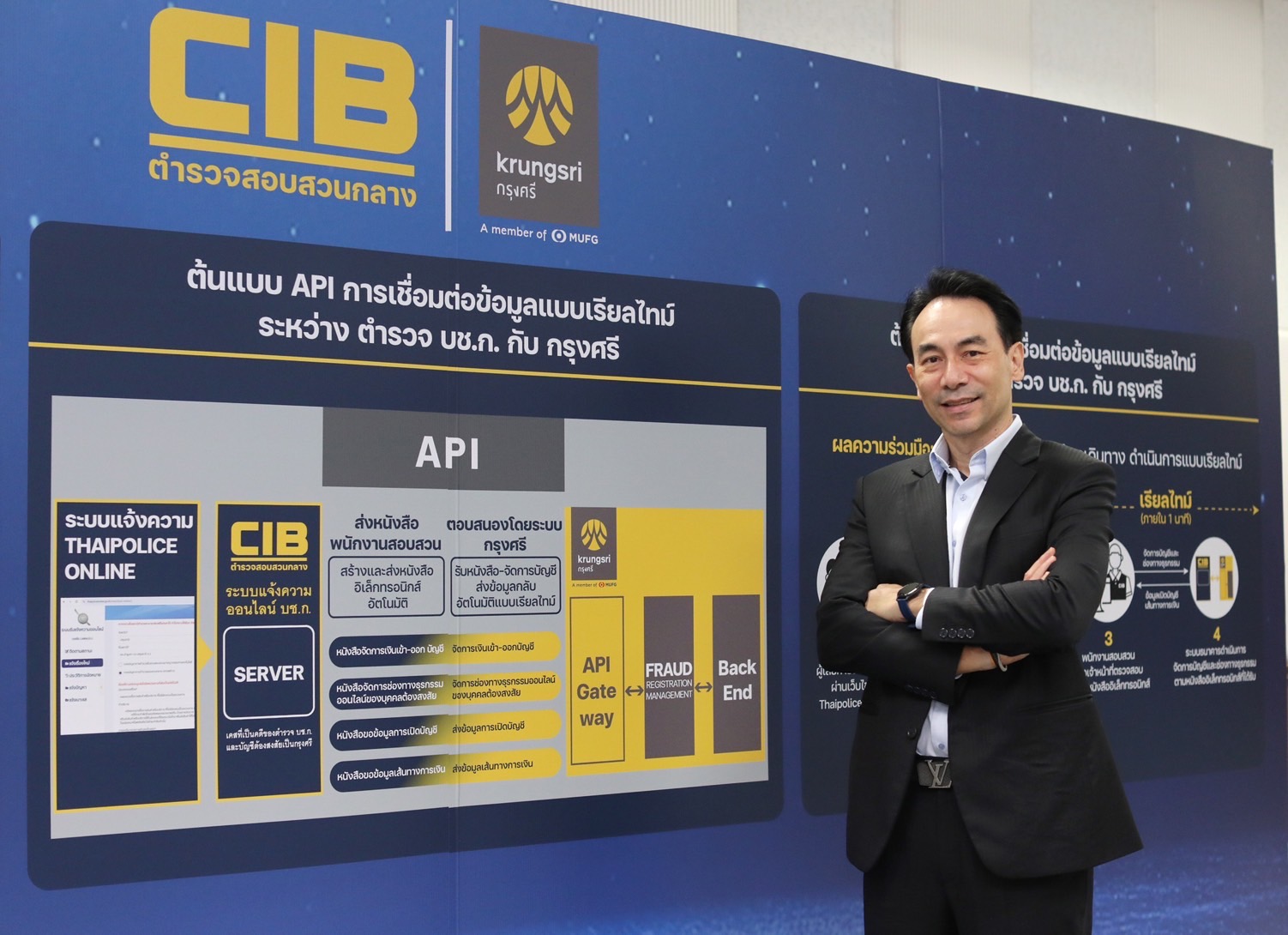 กองบัญชาการตำรวจสอบสวนกลาง (บช.ก.) โดย พลตำรวจโท จิรภพ ภูริเดช ผู้บัญชาการตำรวจสอบสวนกลาง และ ธนาคารกรุงศรีอยุธยา จำกัด (มหาชน) (กรุงศรี) โดย นายตุลย์ โรจน์เสรี ประธานคณะเจ้าหน้าที่ด้านข้อมูลและการวิเคราะห์ระดับองค์กร ร่วมลงนามในบันทึกความเข้าใจว่าด้วยการบูรณาการข้อมูลและระบบเพื่อการป้องกันและปราบปรามอาชญากรรมทางเทคโนโลยี ระหว่างกองบัญชาการตำรวจสอบสวนกลาง กับ ธนาคารกรุงศรีอยุธยา จำกัด (มหาชน) เปิดตัวต้นแบบการเชื่อมต่อข้อมูลแบบเรียลไทม์ผ่านระบบ API เพื่อยกระดับประสิทธิภาพในการทำงาน รวมถึงการลดระยะเวลาในการดำเนินการประสานข้อมูลและการดำเนินการที่เกี่ยวข้องกับการจัดการบัญชีและช่องทางธุรกรรม เพื่อป้องกันความเสียหายลุกลาม พร้อมร่วมกันขับเคลื่อนมาตรการป้องกันเชิงรุก ใช้ Data Analytics วิเคราะห์พฤติกรรมต้องสงสัย มุ่งลดเหตุอาชญากรรมทางเทคโนโลยีและอาชญากรรมทางการเงินที่เกี่ยวข้อง เป็นต้น สำหรับในงานเปิดตัวต้นแบบการเชื่อมต่อข้อมูลแบบเรียลไทม์ผ่านระบบ API ได้รับเกียรติจาก พล.ต.ต. ณัฐศักดิ์ เชาวนาศัย รองบัญชาการตำรวจสอบสวนกลาง เป็นตัวแทนในพิธี