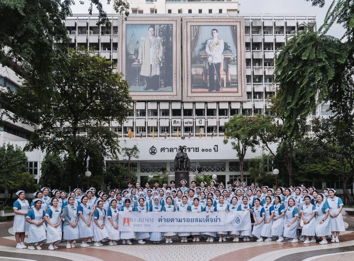 พร้อมกันนี้ มูลนิธิฯ ยังมีการเตรียมความพร้อมให้นักศึกษาที่จะออกไปปฏิบัติงานเมื่อจบการศึกษา โดยร่วมกับ บี.กริม จัดอบรม “ค่ายตามรอยสมเด็จย่า” รุ่นที่ 7 สำหรับกลุ่มนักศึกษาพยาบาล ของวิทยาลัยพยาบาลบรมราชชนนีที่ได้รับ ”ทุนการศึกษาสมเด็จย่า 90” จำนวน 120 คน เมื่อวันที่ 14 – 16 ตุลาคม 2568 ณ ศูนย์สัมมนาและฝึกอบรม มหาวิทยาลัยสุโขทัยธรรมาธิราช จังหวัดนนทบุรี เพื่อให้ความรู้เกี่ยวกับพระราชประวัติและพระราชกรณียกิจของสมเด็จพระศรีนครินทราบรมราชชนนี ตลอดจนการทัศนศึกษาสถานที่สำคัญ เช่น อุทยานเฉลิมพระเกียรติสมเด็จพระศรีนครินทราบรมราชชนนี พิพิธภัณฑ์ศิริราชพิมุขสถาน พิพิธภัณฑ์การแพทย์ศิริราช และวัดอรุณราชวรารามราชวรมหาวิหาร โดยมีเป้าหมายเพื่อให้นักศึกษาทุนพยาบาล มีความรู้ความเข้าใจในแนวคิดและแนวปฏิบัติตามอุดมการณ์การพยาบาลของสมเด็จย่า มีความรักและความภาคภูมิใจในวิชาชีพการพยาบาล และยึดมั่นวิชาชีพพยาบาลตามรอยสมเด็จย่า โดยปัจจุบันมีนักศึกษาเข้ารับการอบรม “ค่ายตามรอยสมเด็จย่า” แล้วจำนวน 603 คน