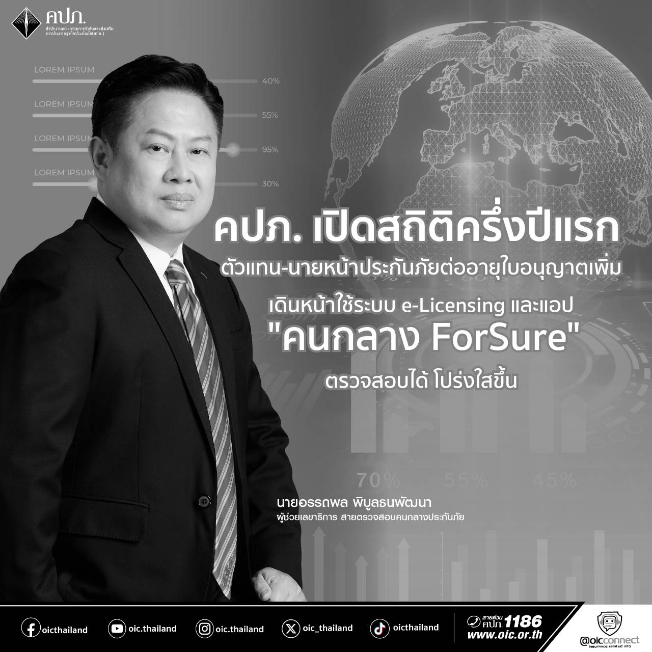 คปภ. เปิดสถิติครึ่งปีแรก ตัวแทน-นายหน้าประกันภัยต่ออายุใบอนุญาตเพิ่ม เดินหน้าใช้ระบบ e-Licensing และแอป “คนกลาง ForSure” ตรวจสอบได้ โปร่งใสขึ้น
