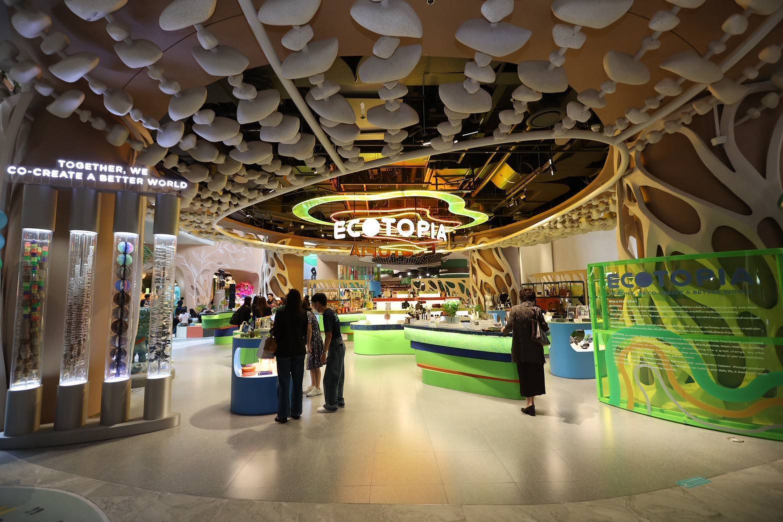 นำโดย ECOTOPIA เมืองแห่งคนรักษ์โลกที่เชื่อว่า “เราสร้างโลกให้ดีขึ้นได้ด้วยกัน” พื้นที่ที่คัดสรรสินค้าและนวัตกรรมยั่งยืนจากผู้ประกอบการที่ใส่ใจสิ่งแวดล้อม ตั้งแต่ SMEs ทั่วประเทศถึงแบรนด์ระดับโลก นอกจากนี้ ยังมีร้านต่างๆ ที่มาร่วมในเมืองต้นแบบแห่งโลกอนาคต อาทิ แบรนด์ดอยตุง มูลนิธิแม่ฟ้าหลวง ในพระบรมราชูปถัมภ์, Chan, MIIR, Sedar.W, Shima Park แห่งแรกในประเทศไทย, Somuti, Sudtana เป็นต้น และ NEXTOPIA ยังเป็นพื้นที่ Pet Welcome อีกด้วย