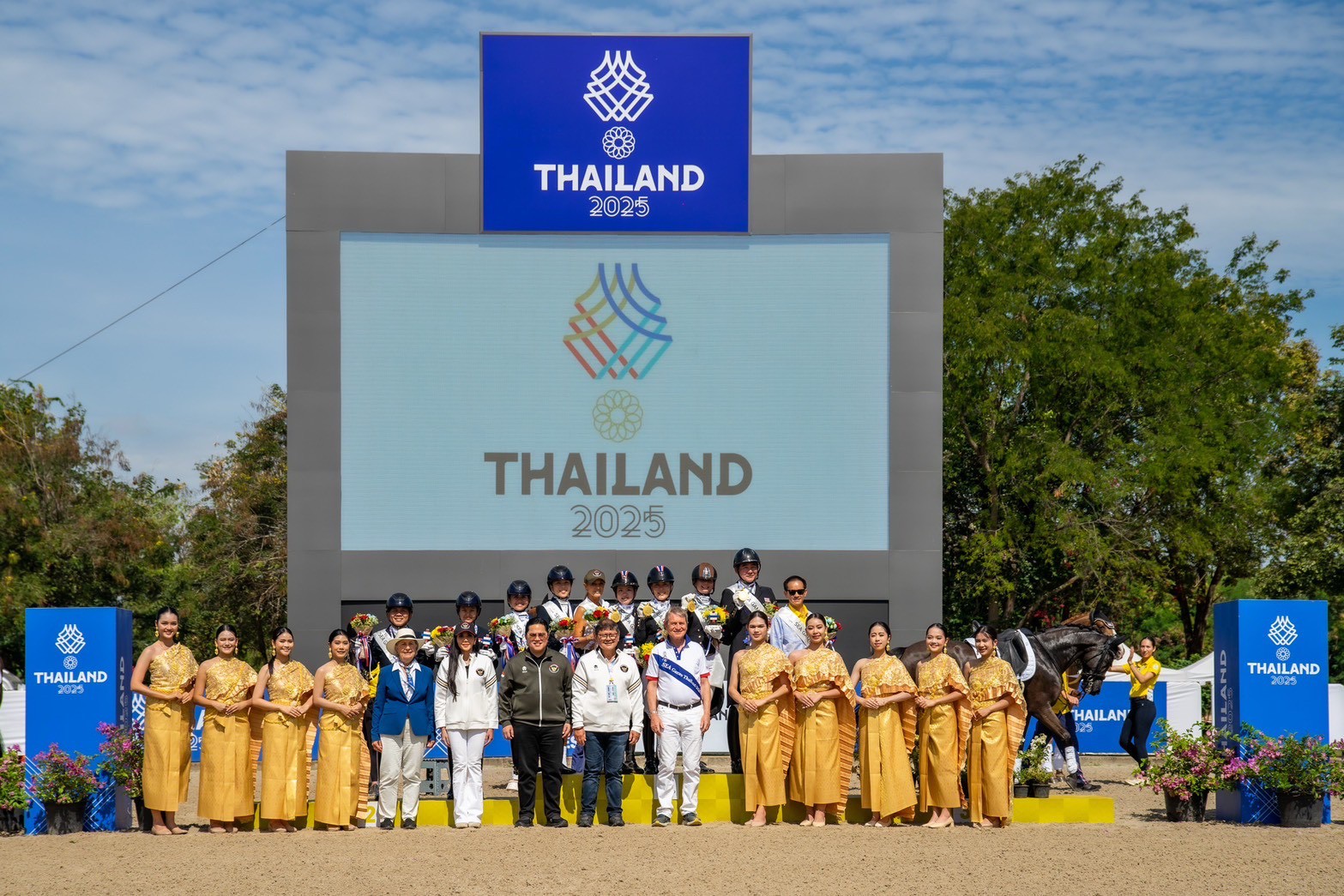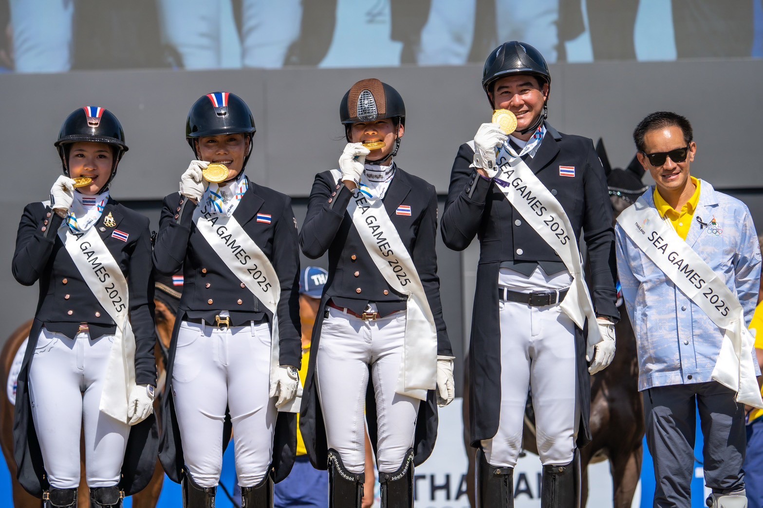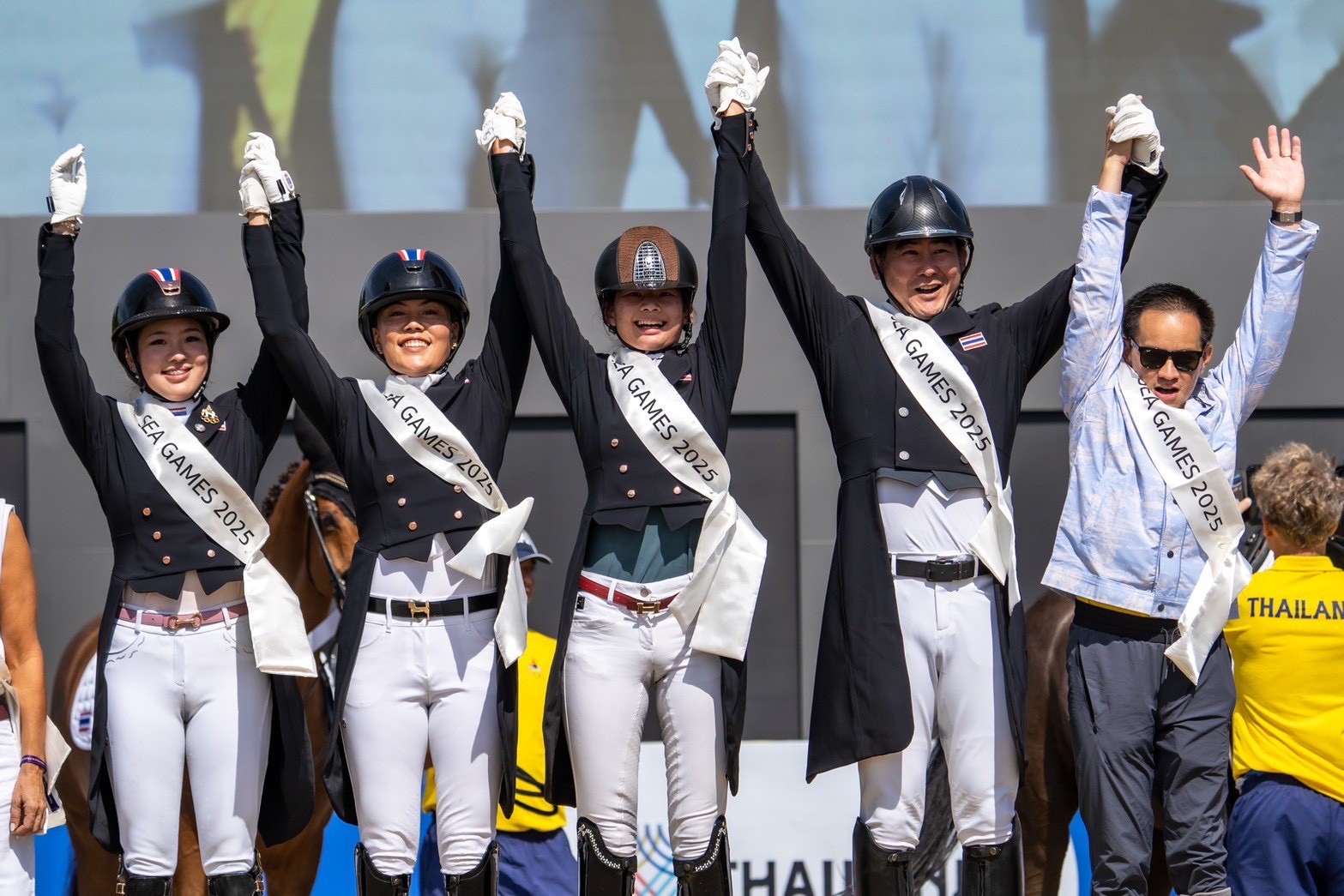 สมาคมกีฬาขี่ม้าแห่งประเทศไทยในพระบรมราชูปถัมภ์ ร่วมแสดงความยินดีกับความสำเร็จของนักกีฬาทีมชาติไทย หลังประเทศไทยทำผลงานได้อย่างยอดเยี่ยมในการแข่งขัน Dressage Team Final ในมหกรรมกีฬา ซีเกมส์ ครั้งที่ 33 คว้า เหรียญทองประเภททีม จากการแข่งขันซึ่งจัดขึ้นเมื่อวันอาทิตย์ที่ 14 ธันวาคม 2568 ณ Thai Polo & Equestrian Club Pattaya (B.Grimm Country Club)