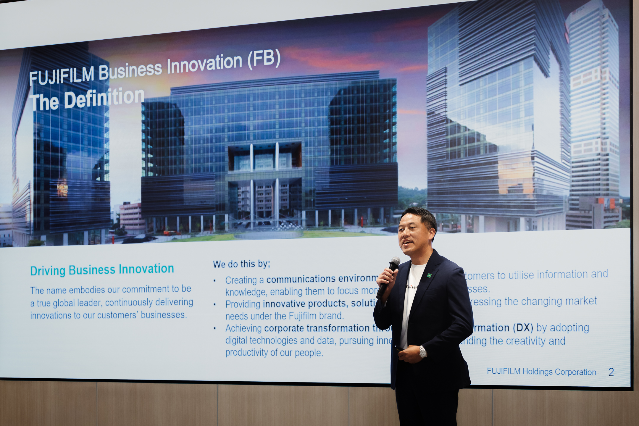 “ฟูจิฟิล์มไม่ได้เป็นเพียงผู้จำหน่ายผลิตภัณฑ์แต่เป็นผู้ขับเคลื่อนการเปลี่ยนแปลงองค์กรผ่าน Digital Transformation ด้วยการนำข้อมูลและนวัตกรรมเทคโนโลยีดิจิทัลมาใช้ ซึ่งไม่เพียงช่วยเพิ่มประสิทธิภาพและผลกำไร แต่ยังเสริมสร้างขีดความสามารถให้กับทุกอุตสาหกรรมและบุคลากรในทุกระดับ” มร. มาซาอากิ กล่าว