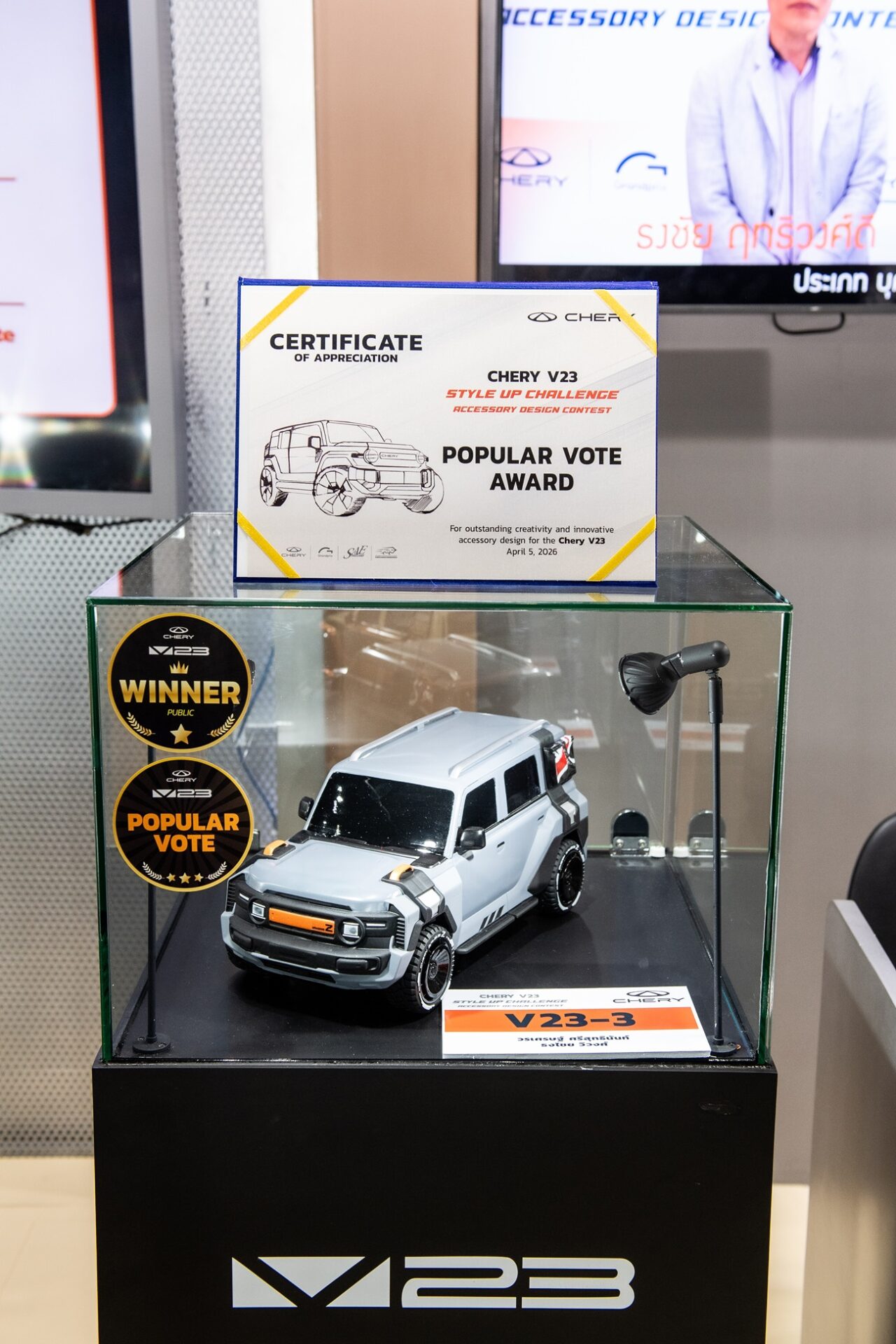 เชอรี ประเทศไทย ร่วมกับ สมาคมวิศวกรรมยานยนต์ไทย  บริษัท กรังด์ปรีซ์ อินเตอร์เนชั่นแนล จำกัด (มหาชน) และสมาคมผู้สื่อข่าวรถยนต์และรถจักรยานยนต์ไทย(สรยท.) จัดพิธีมอบรางวัลโครงการประกวดออกแบบอุปกรณ์ตกแต่งรถยนต์ “Chery V23 Style Up Challenge” อย่างเป็นทางการ ณ บูธรถยนต์ CHERY ภายในงาน บางกอก อินเตอร์เนชั่นแนล มอเตอร์โชว์ ครั้งที่ 47  อาคารชาเลนเจอร์ 1–3 อิมแพ็ค เมืองทองธานี เมื่อวันที่ 5 เมษายน 2569  ท่ามกลางบรรยากาศคึกคัก โดยมีผู้บริหาร พันธมิตรในอุตสาหกรรม และสื่อมวลชนร่วมเป็นสักขีพยาน