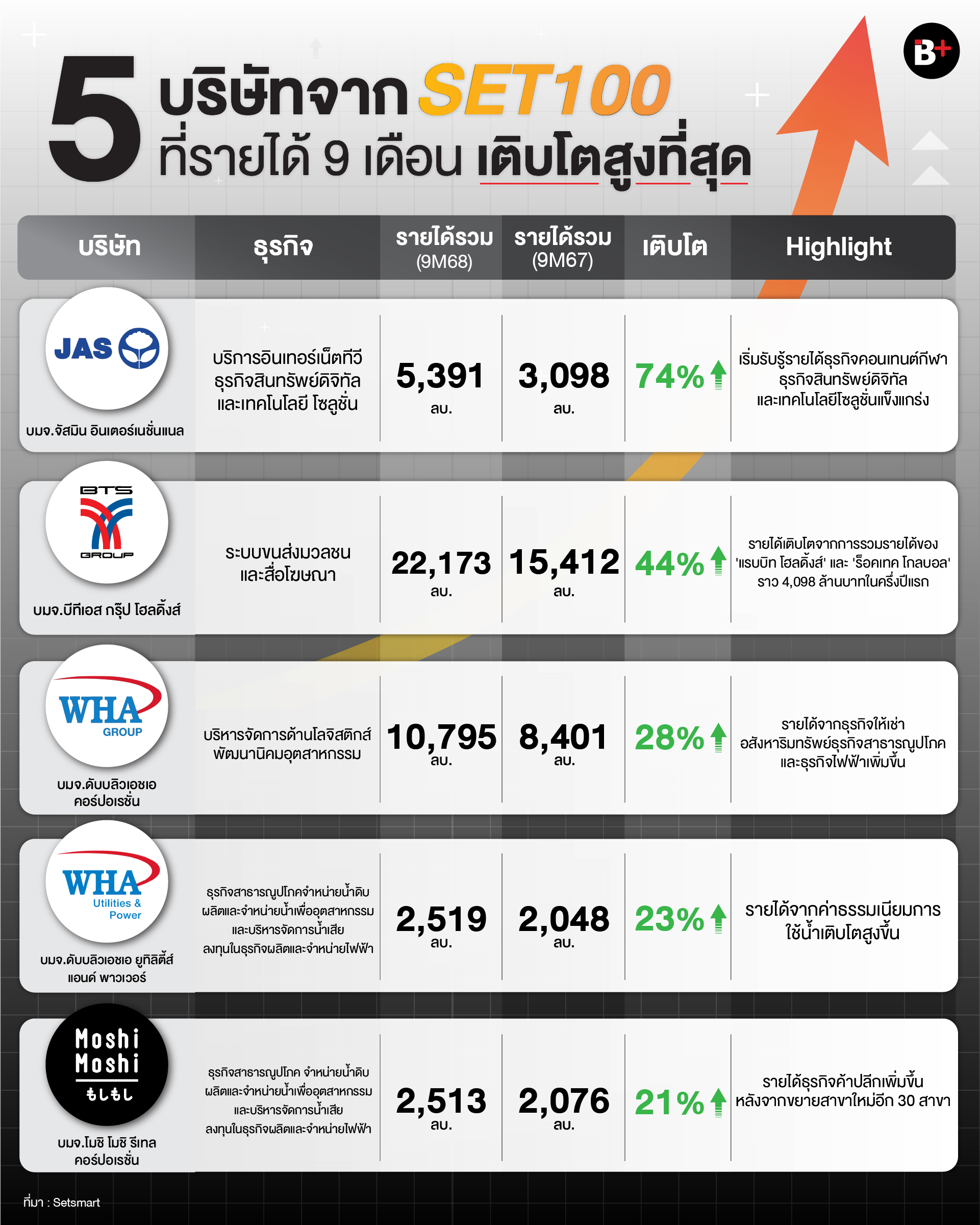 5 บริษัทจาก SET100 ที่รายได้ 9 เดือนเติบโตสูงที่สุด