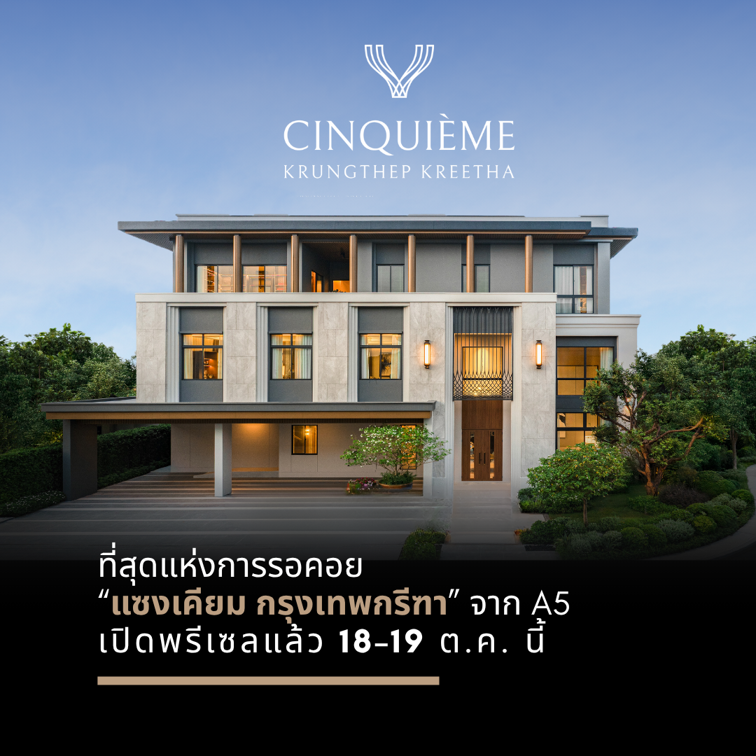บริษัท แอสเซท ไฟว์ กรุ๊ป จำกัด (มหาชน) หรือ A5 ผู้นำด้านการพัฒนาอสังหาริมทรัพย์แนวราบ-แนวสูงระดับลักชัวรี เตรียมเปิดพรีเซล โครงการใหม่ “Cinquième Krungthep Kreetha” (แซงเคียม กรุงเทพกรีฑา) บ้าน Private Pool Villa หรูระดับ Ultra Luxury จำนวนจำกัดเพียง 16 ยูนิต ภายใต้แนวคิด “The Fifth Dimension of Privacy Living” ที่เน้นความเป็นส่วนตัวและคุณภาพชีวิตในทุกมิติ
