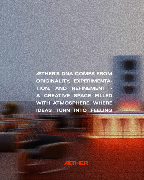 ÆTHER ถูกออกแบบมาเพื่อเติมมิติใหม่ให้กับเส้นขอบฟ้าของย่านสีลม ด้วยลำโพงสีเงินขนาดมหึมาที่ตั้งตระหง่านล้อรับกับแสงดวงอาทิตย์ องค์ประกอบของเฟอร์นิเจอร์สไตล์เรียบหรูนั่งสบาย และแสงสีที่ออกแบบมาเพื่อสร้างบรรยากาศให้ท้องฟ้ายามค่ำคืนมีลูกเล่นและสีสันที่แปลกตา สะท้อนให้เห็นถึงดีเอ็นเอของ ÆTHER ที่ได้รับแรงบันดาลใจมาจากเทพเจ้าแห่งแสงและชั้นบรรยากาศในตำนานกรีก นำเสนอนิยามความเท่ความผสานกับศาสตร์การทดลอง และความประณีตในทุกรายละเอียด