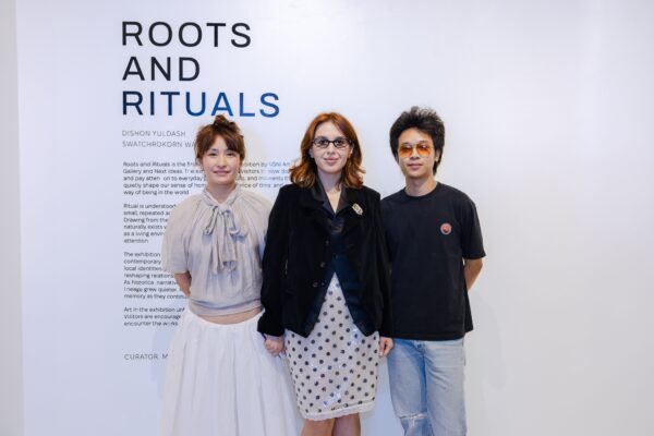 นิทรรศการ Roots & Rituals นำเสนอผลงานของคุณ Dishon Yuldash และ คุณสวัชโรกร วรรณศร โดยคุณ Dishon Yuldash ถ่ายทอดประเด็นเรื่องความทรงจำและการเปลี่ยนแปลงผ่านประติมากรรมที่มีรูปทรงเรียบลื่น ไหลต่อเนื่อง และตอบสนองต่อแสงรวมถึงการเคลื่อนไหวของผู้ชม ขณะที่คุณสวัชโรกร วรรณศร แบบแผนและความเชื่อในวัฒนธรรมภาคเหนือของไทยมาเป็นแรงบันดาลใจ สร้างสรรค์ผลงานจากตำนานและคติความเชื่อเกี่ยวกับการปกป้อง ความแข็งแกร่ง และความสัมพันธ์ระหว่างมนุษย์กับธรรมชาติ ถ่ายทอดผ่านพื้นผิวและวัสดุที่ให้สัมผัสชัดเจน