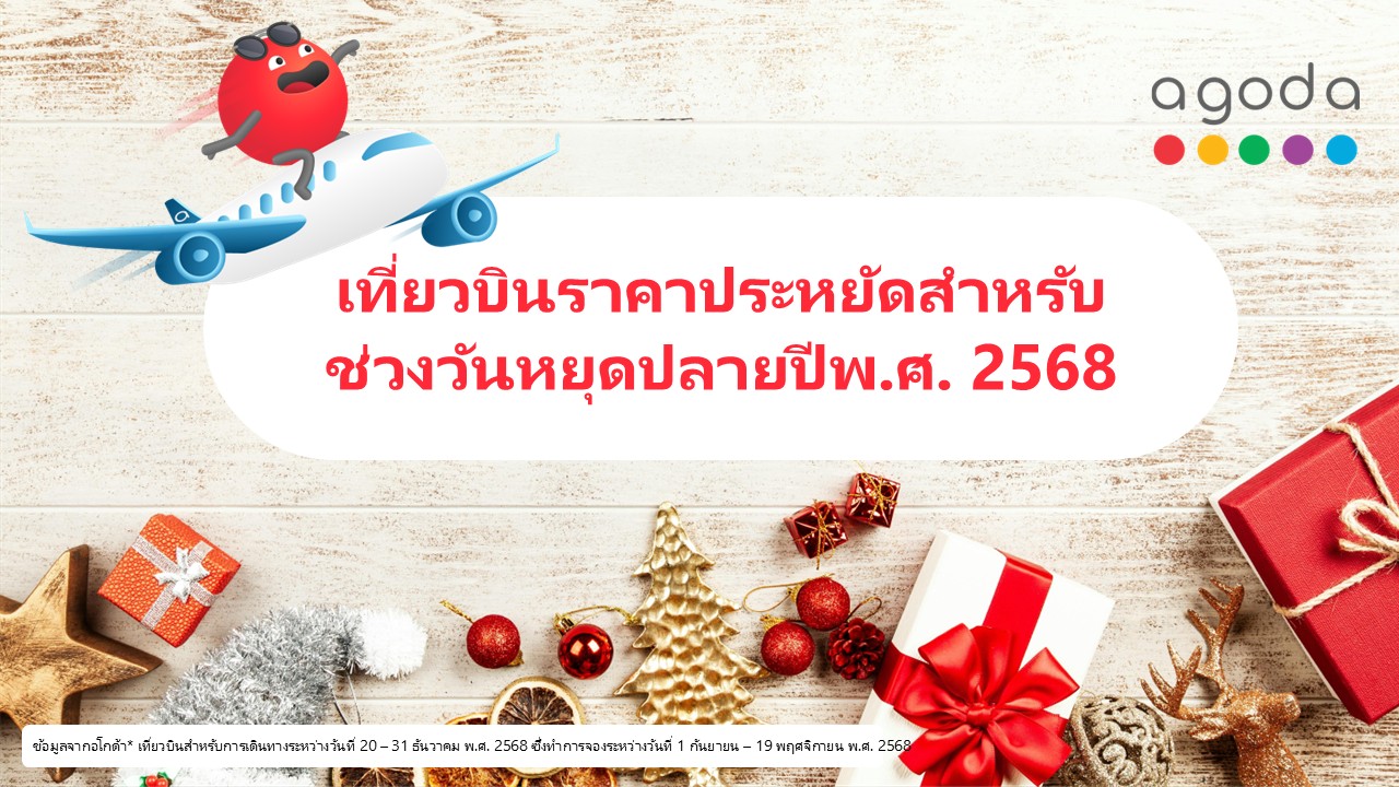 ในช่วงเทศกาลส่งท้ายปีที่กำลังจะมาถึง อโกด้า แพลตฟอร์มดิจิทัลด้านการท่องเที่ยวเผย เส้นทางบินภายในประเทศและระหว่างประเทศที่คุ้มค่าที่สุดทั่วเอเชีย ซึ่งจะช่วยให้นักเดินทางวางแผนเฉลิมฉลองกันได้แบบสบายกระเป๋ายิ่งขึ้น