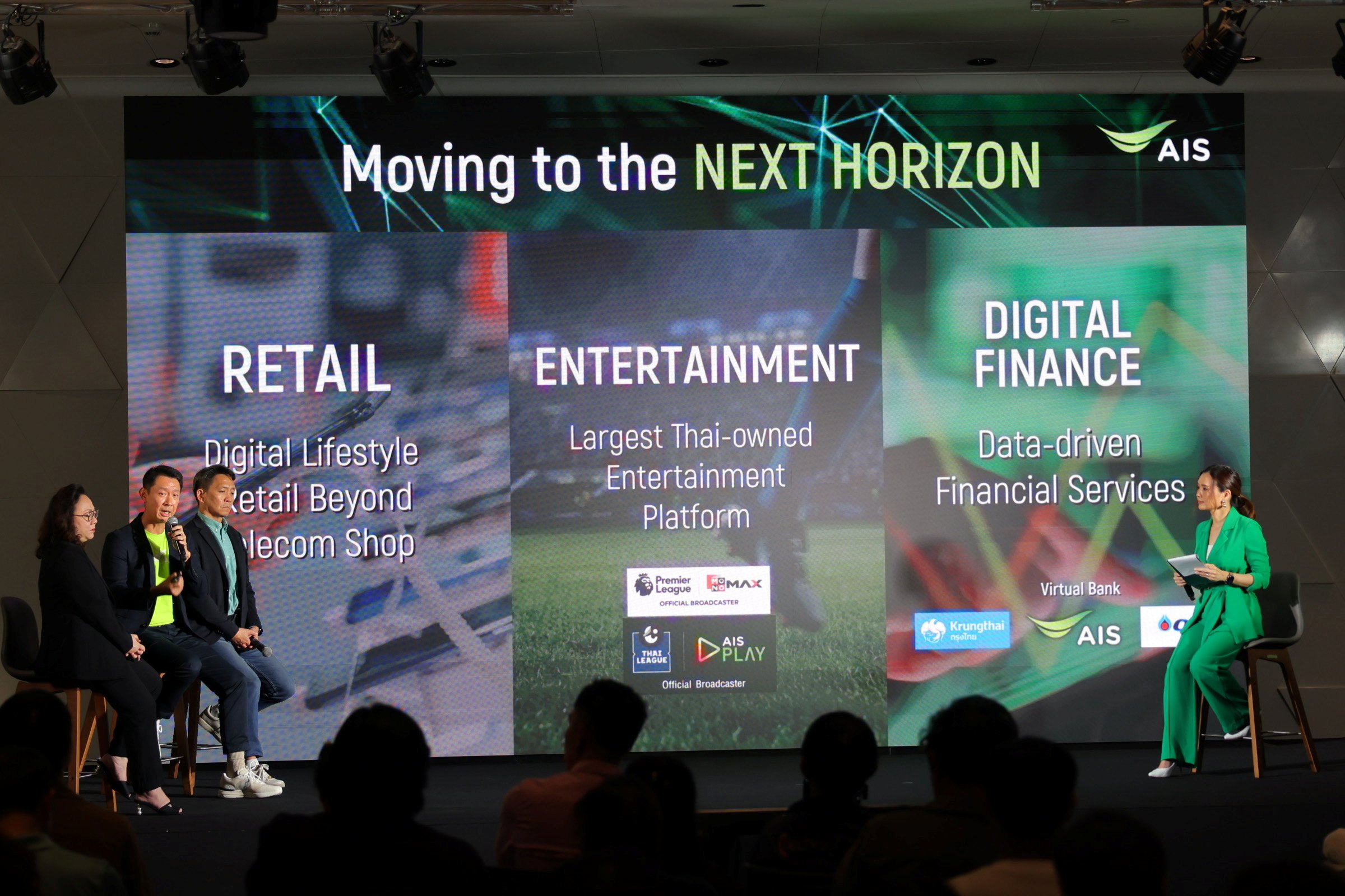 - 35 ปี แห่งการเติบโตทางธุรกิจ จากความแข็งแกร่งในธุรกิจหลักด้านโทรคมนาคมและอินเทอร์เน็ต ตลอด 35 ปีที่ผ่านมา วันนี้ AIS ก้าวสู่การวิวัฒน์ใหม่ ขยายสู่อนาคตด้วย 3 เสาหลักธุรกิจ ได้แก่ Retail Tech ที่ยกระดับประสบการณ์ดิจิทัลไลฟ์สไตล์ครบวงจร, Entertainment Platform อย่าง AIS PLAY ที่รวมที่สุดแห่งความบันเทิงและกีฬา และ Digital Finance ขับเคลื่อนอนาคตการเงินดิจิทัลของประเทศ โดยจับมือ OR และ KTB เพื่อเตรียมร่วมขับเคลื่อนธุรกิจ Virtual Bank เปิดโอกาสให้คนไทยเข้าถึงบริการทางการเงินได้อย่างทั่วถึง สร้างอนาคตทางเศรษฐกิจที่มั่นคงและยั่งยืนให้กับสังคมไทย