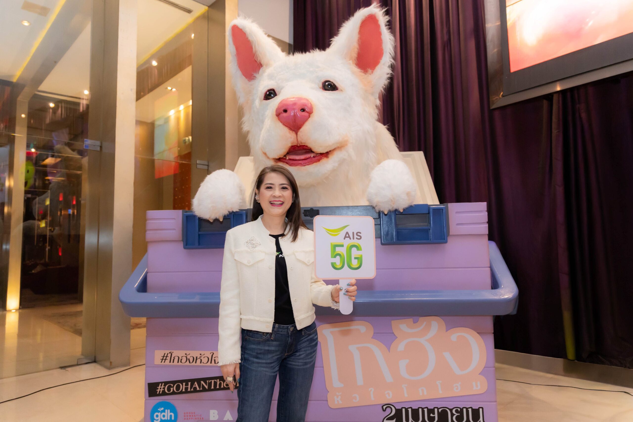 AIS ตอกย้ำภาพลักษณ์แบรนด์ที่เข้าถึงทุกเจเนอเรชันและตอบโจทย์ทุกไลฟ์สไตล์ เดินหน้าสร้างสรรค์ประสบการณ์ความสุขให้กับลูกค้า ด้วยการจัดฉายภาพยนตร์ “โกฮัง..หัวใจโกโฮม” ผลงานใหม่จาก GDH รอบพิเศษก่อนใคร โดยผู้โชคดีที่ได้เข้าร่วมชมรอบพิเศษครั้งนี้ มาจากการคัดเลือกผ่านกิจกรรมแชร์ภาพถ่ายและเรื่องราวของสุนัขตัวโปรด ภายในงาน ลูกค้า AIS ได้สัมผัสบรรยากาศอบอุ่น พร้อมร่วมกิจกรรมสุดพิเศษกับนักแสดงนำ “เจ้านาย-จินเจษฎ์ วรรธนะสิน” ที่มาแบ่งปันเบื้องหลังการถ่ายทำอย่างใกล้ชิด รวมถึงกิจกรรมเล่นเกมลุ้นรับของรางวัลสุดพิเศษตลอดงาน