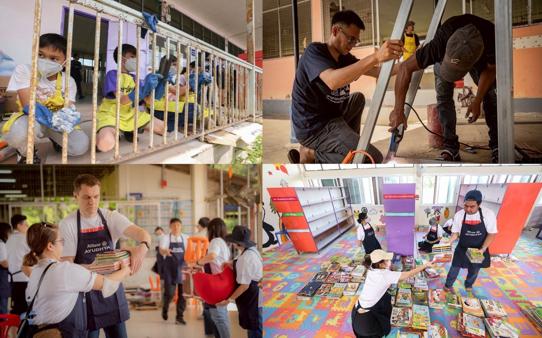 ควบคู่ไปกับการช่วยเหลือเร่งด่วน อลิอันซ์ อยุธยา ได้เปิดแคมเปญ “ซ่อมสร้าง…ฟื้นฟูสงขลา” เพื่อระดมทุนจากสาธารณชน และเชิญชวนจิตอาสาเข้าร่วมกิจกรรม CSR โดยกิจกรรมล่าสุดได้จัดขึ้นระหว่างวันที่ 16–17 มกราคมที่ผ่านมา โดยมีพนักงาน พันธมิตร และอาสาสมัครกว่า 50 คน จากกรุงเทพฯ และพื้นที่หาดใหญ่ ร่วมกันฟื้นฟูห้องสมุดโรงเรียนบ้านใต้ ตำบลคูเต่า ซึ่งได้รับความเสียหายจากน้ำท่วม เพื่อให้นักเรียนกว่า 300 คนได้กลับมามีพื้นที่การเรียนรู้ที่ปลอดภัยและสร้างแรงบันดาลใจอีกครั้ง ภายในกิจกรรม อาสาสมัครได้ร่วมกันคัดแยกหนังสือที่ยังอยู่ในสภาพดี ปรับปรุงและตกแต่งห้องสมุดใหม่ เพื่อให้เด็ก ๆ สามารถกลับมาใช้ประโยชน์ได้อย่างเต็มที่