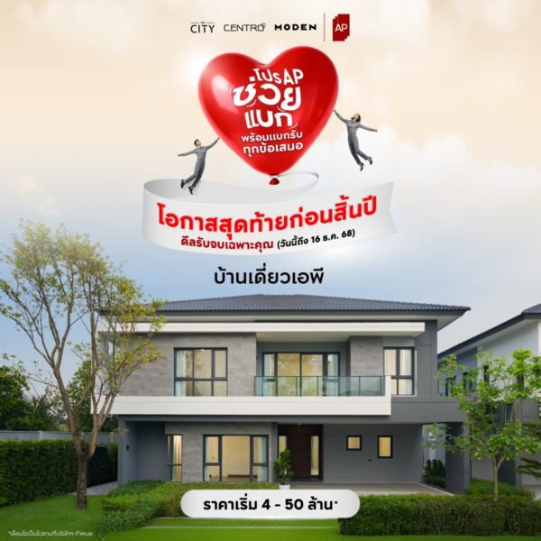 บริษัท เอพี ไทยแลนด์ จำกัด (มหาชน) ผู้นำธุรกิจพัฒนาอสังหาริมทรัพย์ของไทย ภายใต้คำมั่นสัญญา “ชีวิตดีๆ ที่เลือกเองได้” ตอกย้ำความตั้งใจในการส่งมอบที่สุดของ Living Quality ในแบบคุณให้กับครอบครัวเมืองทั่วกรุงเทพฯ และปริมณฑล ประกาศจัดแคมเปญส่งท้ายปีอย่างยิ่งใหญ่ที่สุด กับ “โปร AP ช่วยแบก” แบกรับภาระทุกข้อเสนอ และรับจบทุกดีลก่อนสิ้นปี มอบข้อเสนอที่ทำให้ทุกคนสบายใจจนตัวลอย เพื่อให้การซื้อบ้านเครือเอพีเป็นเรื่องง่ายกว่าที่เคย ด้วยข้อเสนอเด็ด อาทิ บ้านเดี่ยวเอพี อยู่ฟรีนานสูงสุด 3 ปี* หรือ เลือกรับดอกเบี้ยพิเศษ 0% นาน 1 ปี* ทาวน์โฮมและบ้านแฝดเอพี ช่วยลดภาระให้คุณ 3 ปี ไม่ต้องผ่อน* คอนโดเอพี อยู่ฟรีนานสูงสุด 2 ปี พร้อมฟรีค่าส่วนกลาง* และของแถมรวมมูลค่าสูงสุด 500,000 บาท[1] ครอบคลุมโครงการคุณภาพทั้งบ้านเดี่ยว ทาวน์โฮม บ้านแฝด และคอนโดมิเนียม ในทำเลศักยภาพทั่วกรุงเทพฯ และปริมณฑล ตั้งแต่วันนี้จนถึง 16 ธันวาคม 2568 (หรือตามที่โครงการกำหนด)