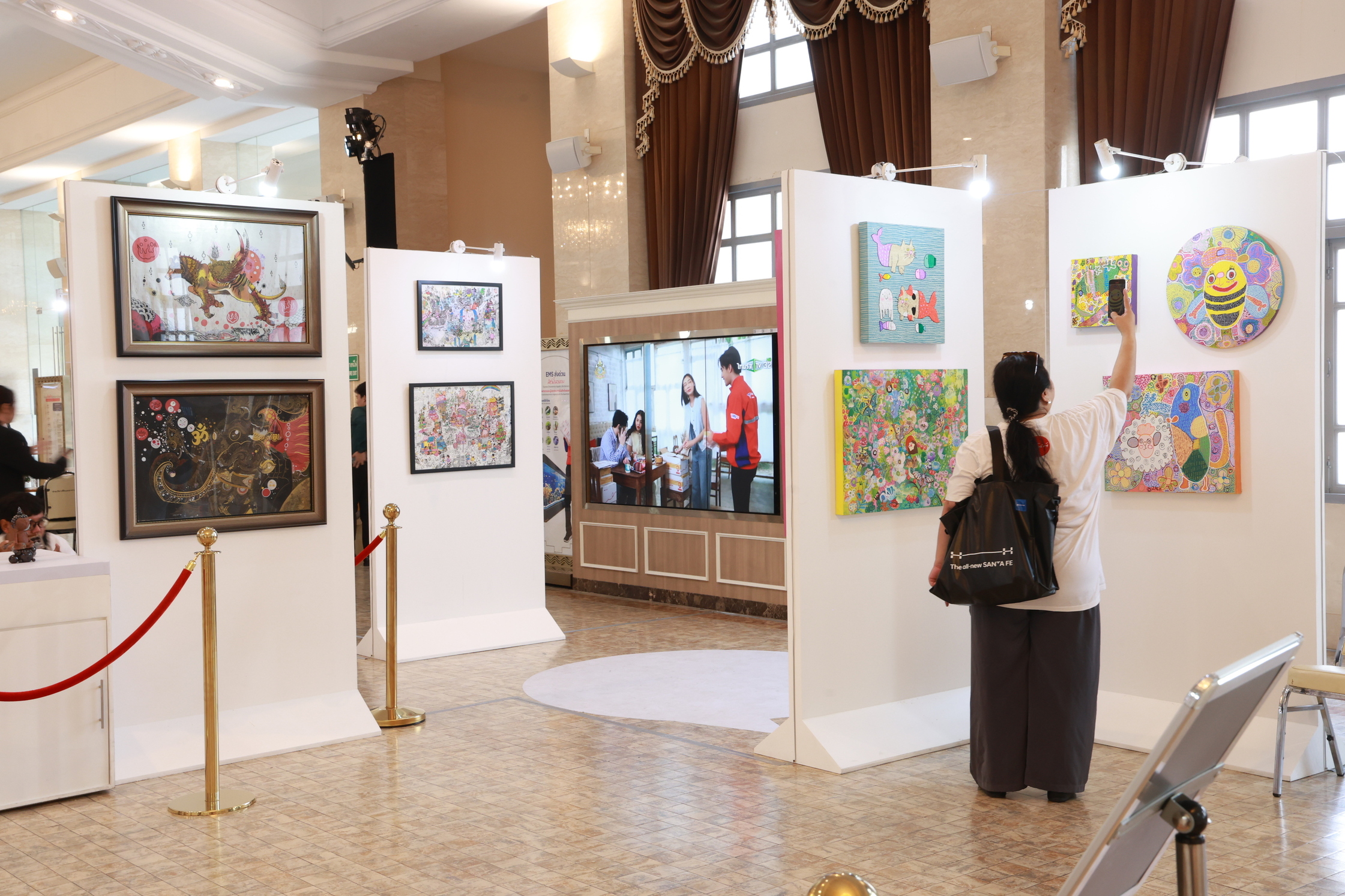 ด้าน รศ. ดร. วรากรณ์ สามโกเศศ ประธานกรรมการ มูลนิธิ ซี.ซี.เอฟ. เพื่อเด็กและเยาวชนฯ กล่าวเสริมถึงความสำคัญของการขับเคลื่อนความเท่าเทียมในครั้งนี้ว่า “มูลนิธิฯ รู้สึกขอบคุณ บริษัท ไปรษณีย์ไทย จำกัด และพันธมิตรทุกภาคส่วน ที่ร่วมกันเปิดพื้นที่แห่งโอกาสนี้ขึ้น เพราะสำหรับเด็กที่มีความต้องการพิเศษในพื้นที่ห่างไกล สิ่งที่พวกเขาขาดแคลนที่สุดไม่ใช่พรสวรรค์ แต่คือ ‘เครื่องมือ’ และ ‘ความเข้าใจ’ ที่จะช่วยดึงศักยภาพเหล่านั้นออกมา ปัจจุบัน มูลนิธิฯ ดูแลเด็กที่มีภาวะบกพร่องทางพัฒนาการและการเรียนรู้กว่า 1,900 คน ทั่วประเทศ รายได้จากการระดมทุนผ่านนิทรรศการนี้ จะถูกนำไปสานต่อภารกิจสำคัญในการสร้าง ‘ห้องเรียนพิเศษ’ ที่ไม่ได้มีแค่กระดานดำ แต่เป็นห้องเรียนที่ใช้ ‘ศิลปะ ดนตรี กีฬา และสิ่งประดิษฐ์’ เป็นกิจกรรมบำบัด เพื่อฟื้นฟูสมรรถภาพทางกายและใจ ให้เด็กๆ ได้ค้นพบคุณค่าในตัวเอง และสามารถยืนหยัดอยู่ในสังคมได้อย่างภาคภูมิใจ ซึ่งสอดคล้องกับหัวใจของงานในวันนี้ที่พิสูจน์ให้เห็นแล้วว่า ศิลปะคือภาษาเดียวกันที่ช่วยทลายกำแพงแห่งความแตกต่าง และสร้างความเท่าเทียมให้เกิดขึ้นได้จริง”