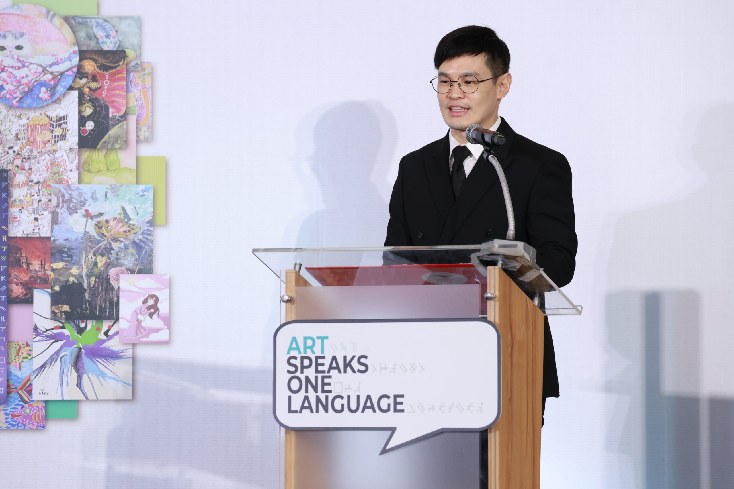 ผศ. ดร.เอกก์ ภทรธนกุล ประธานกรรมการบริหาร บริษัท ไปรษณีย์ไทย จำกัด กล่าวว่า “ไปรษณีย์ไทยรู้สึกยินดีอย่างยิ่งที่ได้ร่วมเป็นส่วนหนึ่งของนิทรรศการ Art Speaks One Language ซึ่งไม่เพียงเป็นการจัดแสดงผลงานศิลปะ แต่คือพื้นที่เชื่อมโยงหัวใจของเด็กพิเศษ ศิลปิน และคนในสังคมเข้าด้วยกัน ไปรษณีย์ไทยในฐานะองค์กรที่ทำหน้าที่เชื่อมโยงผู้คน ความคิด และโอกาส พร้อมส่งต่อรายได้จากการจำหน่ายผลงานศิลปะไปสนับสนุนการพัฒนาห้องเรียนศิลปะให้เด็กพร่องพัฒนาการที่ขาดโอกาสผ่านมูลนิธิซี.ซี.เอฟ.ฯ เพื่อร่วมสร้างสังคมที่เท่าเทียมและยั่งยืน”
