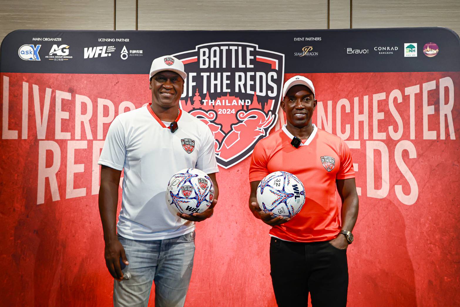 โดยงานแถลงข่าวครั้งนี้จัดขึ้นอย่างยิ่งใหญ่ ณ พาร์ค พารากอน สยามพารากอน พร้อมจัดเต็มเซอร์ไพรส์มากมาย ไฮไลต์คือการปรากฏตัวของสองนักเตะดาวดัง “ดไวท์ ยอร์ค” ผู้เล่นระดับตำนานของ แมนเชสเตอร์ ยูไนเต็ด เรด และ “เอมีล เฮสกีย์” ตำนานแข้งทองจาก ลิเวอร์พูล เรด ซึ่งเผยถึงความรู้สึกที่จะได้เปิดศึกครั้งประวัติศาสตร์ในประเทศไทยกลางเดือนตุลาคมนี้ พร้อมโชว์ลีลาสุดยอดฝีเท้าให้ชมเป็นการเรียกน้ำย่อย อีกทั้งยังร่วม Meet & Greet กับเหล่าแฟนคลับอย่างใกล้ชิด ก่อนแจกลายเซ็นให้กับ Lucky Fan ผู้โชคดีเป็นเซอร์ไพรส์พิเศษ นอกจากนี้ยังมีคนดัง แฟนพันธุ์แท้แมนเชสเตอร์ ยูไนเต็ด มาร่วมแชร์ความประทับใจในทีมรักและบอกเล่าถึงความตื่นเต้นที่จะได้เชียร์นักเตะในดวงใจ ร่วมกับ “นิหน่า-สุฐิตา เรืองรองหิรัญญา” และ “เป๊ก-เปรมณัช สุวรรณานนท์” สองพิธีกร แฟนตัวยง ลิเวอร์พูล เรด