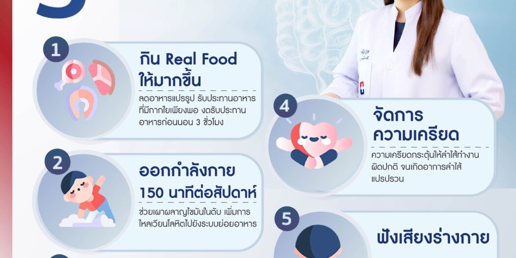 พญ. ศลิษา เลิศสงวนสินชัย อายุรแพทย์โรคระบบทางเดินอาหารและตับ โรงพยาบาลกรุงเทพ กล่าวปิดท้ายถึงเรื่องระบบทางเดินอาหารไว้ว่า