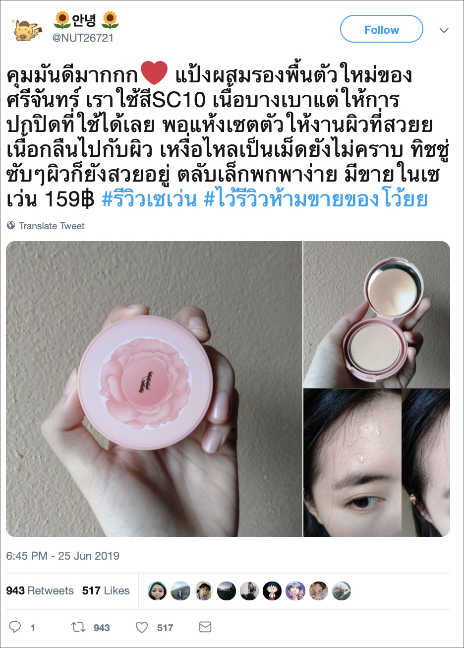 ทั้งนี้ด้วยพฤติกรรมผู้บริโภคคนไทยที่เปิดใจรับผลิตภัณฑ์และสไตล์ใหม่ๆ จากต่างประเทศและยังคงชอบที่จะทดลองสินค้าแบรนด์ไทยเช่นกัน จึงทำให้เกิดบทสนทนาบนทวิตเตอร์เพิ่มขึ้นเป็นอย่างมากโดยเป็นการแบ่งปันเคล็ดลับและคำแนะนำให้กับผู้ใช้คนอื่นๆว่า ผลิตภัณฑ์อะไรที่กำลังมาแรง