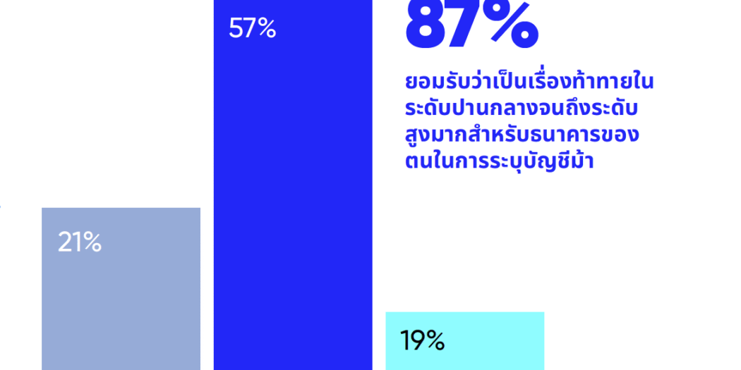 กรุงเทพฯ (11 มีนาคม 2026) — ผลสำรวจล่าสุดในกลุ่มผู้นำทีมบริหารจัดการการทุจริต ป้องกันและปราบปรามการฟอกเงิน (AML) และการปฏิบัติตามกฎเกณฑ์ของธนาคารไทย พบว่า การทลายเครือข่ายบัญชีม้าที่กระจายตัวอยู่ตามสถาบันการเงินหลายแห่ง ยังคงเป็นความท้าทายหลักในการปฏิบัติงานในประเทศไทย ผู้ตอบแบบสอบถามส่วนมาก (87%) ยอมรับว่าธนาคารของตนยังคงประสบปัญหาในการระบุตัวบัญชีม้า ในขณะที่ผู้บริหารระดับ C-suite ถึง 78% รายงานว่าความสูญเสียจากการฉ้อโกงยังคงเพิ่มขึ้นอย่างต่อเนื่อง