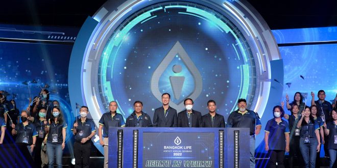 บริษัท กรุงเทพประกันชีวิต จำกัด (มหาชน) มุ่งพัฒนาศักยภาพพร้อมถ่ายทอดความรู้ เสริมสร้างพลังแรงใจให้กับเหล่าทัพนักขายในงานสัมมนาใหญ่ฝ่ายขายประจำปี 2565 Bangkok Life Agency Annual Seminar 2022 ภายใต้ Theme “Health is Wealth, Time is Now” นำโดย ดร.ศิริ การเจริญดี ประธานกรรมการ นายโชน โสภณพนิช กรรมการผู้จัดการใหญ่และประธานเจ้าหน้าที่บริหาร นายอนุชา ภิงคารวัฒน์ ผู้ช่วยผู้จัดการใหญ่สายงานตัวแทนและที่ปรึกษาทางการเงิน พร้อมด้วยกรรมการบริษัทและคณะผู้บริหารระดับสูงนำแม่ทัพและที่ปรึกษาอาวุโสฝ่ายขายทั้ง 16 ทัพ นำขบวนธงขึ้นบนเวทีเพื่อร่วมในพิธีเปิดงานอย่างยิ่งใหญ่ ท่ามกลางพลังนักขายที่เข้าร่วมงานมากกว่า 1,000 คน พร้อมมุ่งมั่นพัฒนาศักยภาพให้ผู้บริหารตัวแทนสามารถสร้างทีมงานคุณภาพสู่เป้าหมายความสำเร็จได้อย่างไร้ขีดจำกัด ณ ศูนย์ประชุมพีช โรงแรม รอยัล คลิฟ โฮเต็ล กรุ๊ป พัทยา จ.ชลบุรี เมื่อเร็ว ๆ นี้