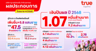 Read More »ทรู คอร์ปอเรชั่น เดินหน้าสร้างผลกำไรอย่างต่อเนื่องเป็นไตรมาสที่ 4 ติดต่อกัน พร้อมจ่ายเงินปันผล 4.1 พันล้านบาท สำหรับไตรมาส 4/2568