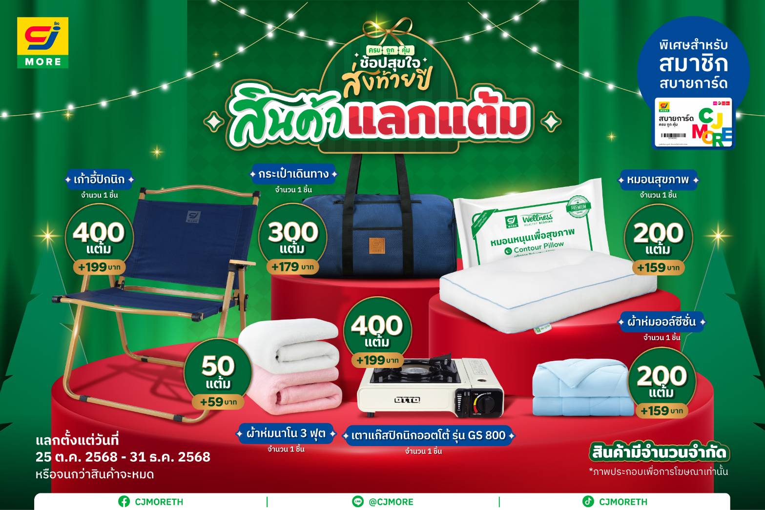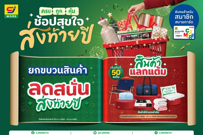 CJ MORE ส่งแคมเปญ “ซีเจ มอร์ ครบ ถูก คุ้ม ช้อปสุขใจ ส่งท้ายปี” เติมความสุขทุกสไตล์รับช่วงเทศกาลปลายปีให้ลูกค้าสมาชิกสบายการ์ดทั่วประเทศ ยกขบวนโปรโมชันสุดคุ้มกับสินค้าลดสนั่น และมอบของขวัญส่งท้ายปีกับสินค้าแลกแต้มสุดคุ้ม ตั้งแต่วันที่ 25 ตุลาคม – 31 ธันวาคม 2568