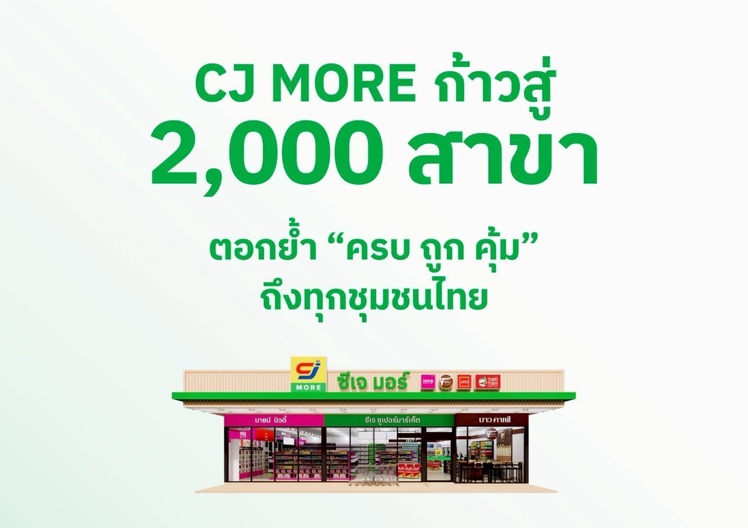 CJ MORE ก้าวสู่สาขาที่ 2,000 ตอกย้ำความเชื่อมั่น หมุดหมายแห่งการเติบโตที่ไม่หยุดยั้ง สะท้อนศักยภาพและความแข็งแกร่งธุรกิจค้าปลีก เดินหน้าส่งมอบความ “ครบ ถูก คุ้ม” ผ่านสินค้าบริการต่างๆ เข้าถึงทุกชุมชนไทย ช่วยลูกค้าฝ่าวิกฤตค่าครองชีพ พร้อมเดินหน้าเปิดสาขา ขยายฐานลูกค้าทั่วประเทศ
