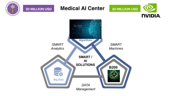 การพัฒนาปัญญาประดิษฐ์ทางการแพทย์ (Medical AI) ยกระดับโครงสร้างพื้นฐานอัจฉริยะด้านสาธารณสุขของประเทศสู่ยุคดิจิทัลอย่างเต็มรูปแบบ ผ่านความร่วมมือเชิงกลยุทธ์กับผู้นำเทคโนโลยีระดับโลกอย่าง NVIDIA และ บริษัท สยาม เอไอ คอร์ปอเรชั่น จำกัด ในการลงทุนเทคโนโลยีประมวลผลประสิทธิภาพสูง NVIDIA H200 เพื่อสร้าง Health Data Lake และระบบ AI วิเคราะห์ข้อมูลสุขภาพหลายมิติ ตั้งแต่ระดับพันธุกรรมจนถึงข้อมูลรายบุคคล การดำเนินการที่ผ่านมาอาทิ ระบบวิเคราะห์ภาพเอกซเรย์ปอดที่มีความแม่นยำสูงถึง 98% ซึ่งปัจจุบันถูกนำไปใช้งานจริงในโรงพยาบาลกว่า 700 แห่ง ทั่วประเทศ ครอบคลุมการดูแลผู้ป่วยกว่า 7.4 ล้านราย และสร้างมูลค่าทางเศรษฐกิจได้มากกว่า 200 ล้านบาท สะท้อนถึงความสำเร็จในการเปลี่ยน Big Health Data ให้เป็นความแม่นยำในการรักษา (Precision Medicine) และยกระดับการแพทย์เชิงป้องกันอย่างเป็นรูปธรรม