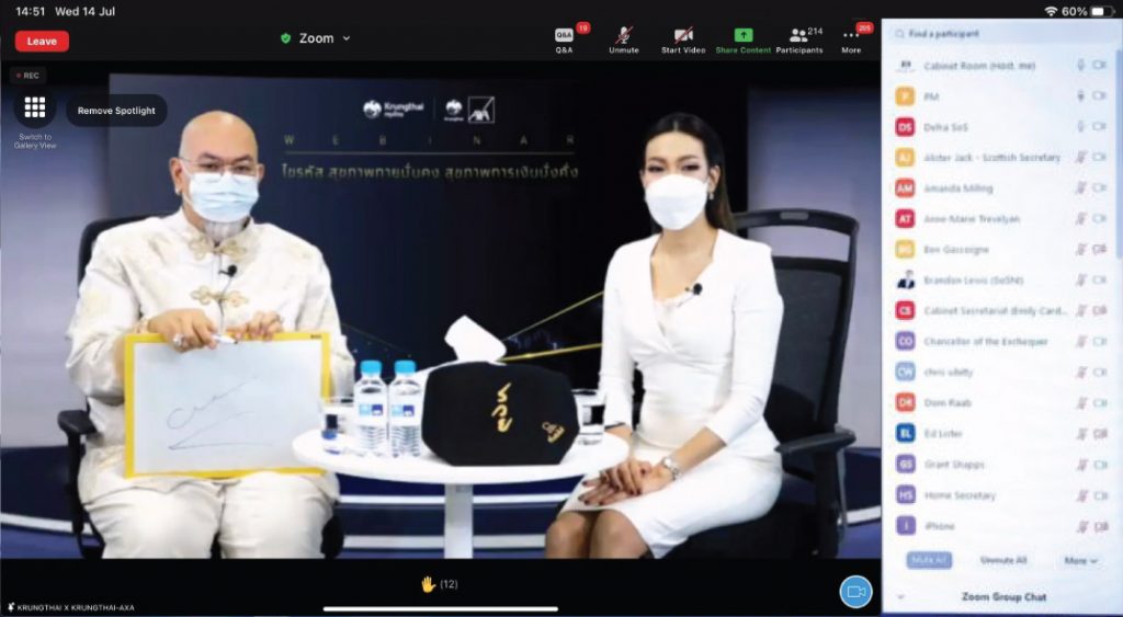 บมจ.ธนาคารกรุงไทย และ บมจ.กรุงไทย-แอกซ่า ประกันชีวิต ร่วมจัดกิจกรรมสัมมนาออนไลน์ กับหัวข้อ “ไขรหัส สุขภาพกายมั่นคง สุขภาพเงินมั่งคั่ง ปี 2564” โดยในงานนี้ได้รับเกียรติจากคุณปิติ ธนวัฒน์ ผู้ช่วยกรรมการผู้จัดการใหญ่ ผู้บริหารกลุ่ม กลุ่มเครือข่ายนครหลวง ธนาคารฯ กล่าววัตถุประสงค์ และกล่าวเปิดงาน พร้อมกันนี้มีหัวข้อสัมมนาพิเศษ “ศาสตร์ลายเซ็นต์เสริมชะตา” โดยอาจารย์เป็นหนึ่ง วงษ์ภูดร ซินแสชื่อดังด้านโหราศาสตร์ และ “สุขภาพดีเริ่มต้นที่การป้องกัน ดูแลตัวเองอย่างไรในช่วง COVID-19” โดยแพทย์หญิง กชกร เจริญผลพิบูลย์ จาก BDMS Wellness Clinic รวมถึง “สุขภาพดี การเงินมั่นคง ชีวิตที่คุณเลือกได้” โดยคุณนุชจรี เศรษฐีธร จาก กรุงไทย-แอกซ่า อะคาเดมี่