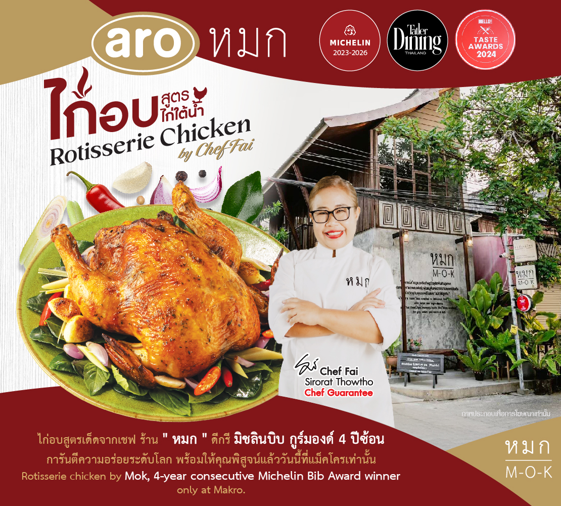 ล่าสุด แม็คโคร-โลตัส เตรียมสร้างสีสันให้กับไลน์อาหารพร้อมทาน ด้วยการจับมือกับร้าน “หมก” ร้านอาหารพื้นถิ่นจากจังหวัดอุบลราชธานี เจ้าของรางวัล มิชลิน บิบ กูร์มองด์ ร่วมพัฒนาเมนู ไก่ Rotisserie สูตรพิเศษ “ไก่ใต้น้ำ” ด้วยการนำเมนูอีสานดั้งเดิมที่เคยปรุงด้วยไอน้ำ มาตีความใหม่ด้วยการอบแบบตะวันตกจนได้เนื้อไก่นุ่ม ฉ่ำ หอมเครื่องเทศ ปรุงรสอีสานแบบเบา ๆ ทานง่าย เพิ่มกลิ่นอายอีสานโมเดิร์นด้วยใบพาสเลย์ พร้อมเสิร์ฟคู่กับน้ำจิ้มแจ่ว ให้ผู้บริโภคปรุงรสได้ตามความชอบ โดยเมนูดังกล่าวผ่านกระบวนการผลิตที่ได้มาตรฐาน พร้อมวางจำหน่ายในแม็คโครช่วงเดือนกุมภาพันธ์นี้ เพื่อให้ลูกค้าได้ลิ้มลองความอร่อยระดับมิชลินในราคาที่เข้าถึงได้