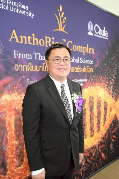 รศ.ภก.ดร.วรสิทธิ์ วงศ์สุทธิเลิศ คณบดีคณะเภสัชศาสตร์ จุฬาฯ กล่าวถึงการต่อยอดงานวิจัยสมุนไพรสู่โมเดลเศรษฐกิจของประเทศว่า ความร่วมมือในครั้งนี้สะท้อนถึงทิศทางการทำงานวิจัยที่ไม่ได้หยุดอยู่เพียงความสำเร็จในระยะเริ่มต้น แต่เป็นงานวิจัยต่อเนื่องที่ต้องเดินหน้าพัฒนาอย่างเป็นระบบ เพื่อสร้างข้อมูลเชิงประจักษ์ที่น่าเชื่อถือและสามารถนำไปใช้ประโยชน์ได้จริงทั้งในเชิงวิชาการและเชิงพาณิชย์ สารสกัด AnthoRice เป็นตัวอย่างสำคัญของโมเดลงานวิจัยที่คณะเภสัชศาสตร์ จุฬาฯ มุ่งขยายผลไปสู่การพัฒนาผลิตภัณฑ์จากสมุนไพรและวัตถุดิบธรรมชาติชนิดอื่น ๆ ในอนาคต โดยให้ความสำคัญกับการควบคุมคุณภาพและประสิทธิผลตลอดกระบวนการ ตั้งแต่ต้นน้ำ กลางน้ำ จนถึงปลายน้ำ เพื่อสร้างความมั่นใจในมาตรฐานของผลิตภัณฑ์ แนวทางดังกล่าวไม่เพียงช่วยยกระดับงานวิจัยด้านสมุนไพรให้มีความน่าเชื่อถือในระดับสากล แต่ยังเป็นกลไกสำคัญในการต่อยอดองค์ความรู้สู่การพัฒนาอุตสาหกรรมและเศรษฐกิจของประเทศ เป็นการสะท้อนภาพของงานวิจัยที่เชื่อมโยงทั้งวิทยาศาสตร์ นวัตกรรม และการพัฒนาเศรษฐกิจอย่างยั่งยืนได้อย่างเป็นรูปธรรม
