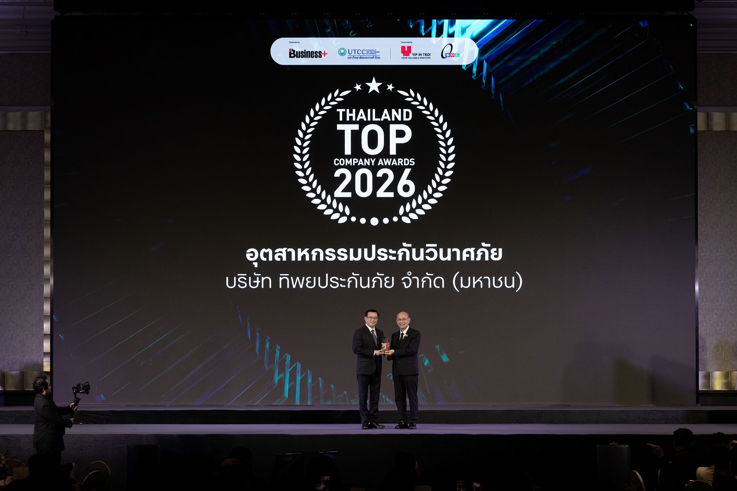 ผลลัพธ์ของทุกความมุ่งมั่นนี้ ถูกยืนยันในระดับที่เป็นรูปธรรมที่สุดด้วยรางวัล THAILAND TOP COMPANY AWARDS 2026 ประเภทอุตสาหกรรมประกันวินาศภัย ที่ ดร.สมพร สืบถวิลกุล ได้รับการชื่นชมและยกย่องจากภาคธุรกิจและสังคมว่า “ท่ามกลางปีที่ยากที่สุด ทิพยประกันภัย ยังคงยืนหยัดในจุดสูงสุดของอุตสาหกรรม และนั่นคือความสำเร็จที่มีความหมายมากกว่าตัวเลขใด ๆ”