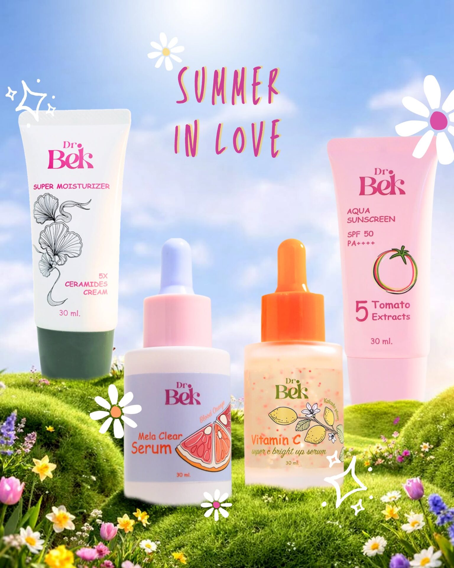 หน้าร้อนนี้ อย่าปล่อยให้แสงแดดทำร้ายผิวอีกต่อไป Dr.Bek (ด๊อกเตอร์ เบค) ผลิตภัณฑ์บำรุงผิวที่อุดมด้วยสารสกัดจากธรรมชาติ โดย ดร.รีเบคก้า รัสเซลล์ ที่ได้นำองค์ความรู้ด้านศาสตร์ชะลอวัยมาต่อยอดสู่การคิดค้นสูตรเฉพาะของ Dr.Bek เป็น 4 ไอเท็ม เพื่อการบำรุงผิวหน้าอย่างครบทุกขั้นตอน ช่วยฟื้นฟูผิวที่อ่อนล้าให้กลับมาดูสดใส เสริมเกราะปกป้องผิวให้แข็งแรง พร้อมล็อกความชุ่มชื้นได้อย่างยาวนาน เผยผิวอิ่มฟู เปล่งปลั่ง สวยครบสูตร ให้คุณมั่นใจได้ในทุกวัน