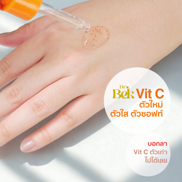 เติมความไบรท์ให้ผิวสู้แดดอีกขั้นด้วย Dr.Bek Vitamin C Super C Bright Up Serum (ด๊อกเตอร์ เบค วิตามิน ซี ซูเปอร์ ซี ไบร์ท อัพ เซรั่ม) เซรั่มวิตามินซีเข้มข้น คัดสรรสารสกัดจาก Kakadu Plum แหล่งวิตามินซีธรรมชาติสูงที่สุด ช่วยบูสต์ผิวกระจ่างใสในรูปแบบเม็ดบีดส์ บำรุงลึกถึงระดับเซลล์ พร้อมปรับสมดุลผิวให้เรียบเนียน ลดการระคายเคือง เหมาะกับทุกสภาพผิวที่ต้องการความโกลว์ จำหน่าย ขนาด 30 ml ราคาขวดละ 420 บาท