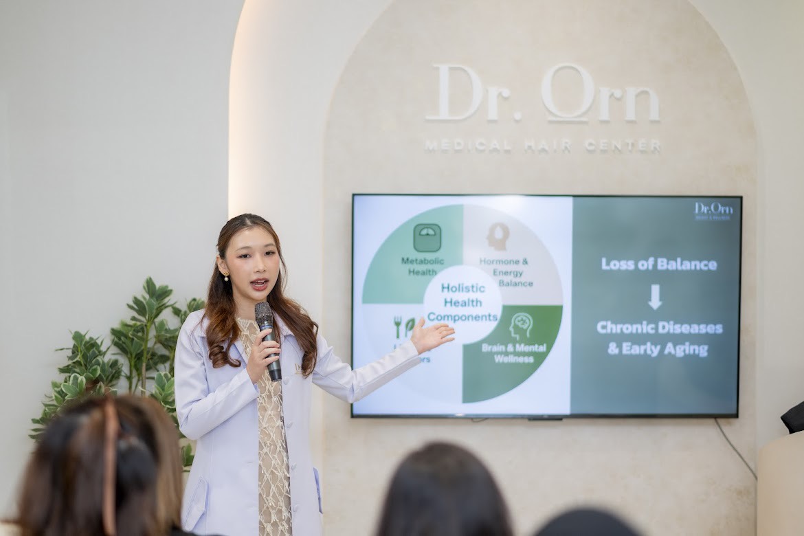 แพทย์หญิงอรอุมา พันธ์อภิวัฒน์ (Dr. Orn) ประธานกรรมการบริหาร และผู้ก่อตั้ง Dr. Orn Medical Hair Center กล่าวว่า จากประสบการณ์ดูแลผู้เข้ารับบริการด้านเส้นผมและสุขภาพมากกว่า 60,000 รายอาทิเช่น โดม ปกรณ์ ลัม , ดาว พิมพ์ทอง วชิราคม , บอย ปกรณ์ ฉัตรบริรักษ์ , เวียร์ ศุกลวัฒน์ คณารศ , เชน ณัฐวัฒน์ เปล่งศิริวัธน์ , สงกรานต์ เตชะณรงค์ , ท๊อป จิรายุส ทรัพย์ศรีโสภา ตลอดระยะเวลากว่า 14 ปี ทำให้เห็นอย่างชัดเจนว่า ปัญหาสุขภาพในปัจจุบัน ไม่ว่าจะเป็นผมร่วง ผมบาง น้ำหนักตัวเพิ่ม หรือภาวะอ่อนล้า ล้วนเป็นผลลัพธ์จากความไม่สมดุลของร่างกาย และไม่สามารถแก้ไขได้อย่างยั่งยืนด้วยการดูแลแบบเหมารวม