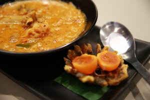 เริ่มต้นกันด้วยของคาวรสชาติหวานมันเข้มข้นเข้าถึงพริกแกงอย่าง แกงคั่วสับปะรดไข่สลิด พระเอกอยู่ที่ไข่ปลาสลิดบางบ่อที่มาแบบเต็มชิ้นเต็มคำ ทานร้อน ๆ คู่กับข้าวสวยหรือข้าวไรซ์เบอร์รี่ร้อน ๆ ช่วยให้กลิ่นเหม็นคาวจางลงได้มาก เสิร์ฟพร้อมปลาวงและไข่แดงเค็มที่ช่วยตัดรสเลี่ยนได้เป็นอย่างดี