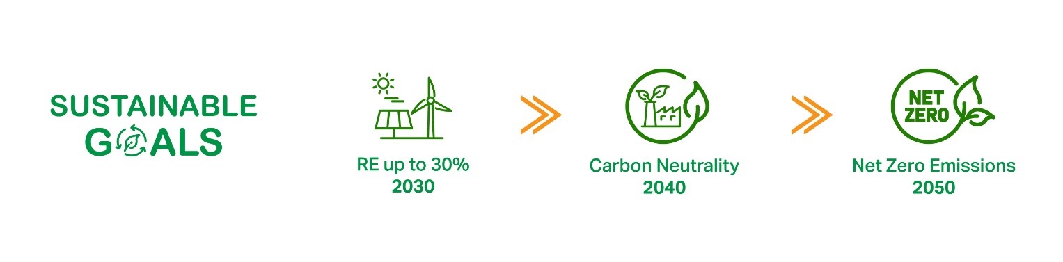 ท่ามกลางการเปลี่ยนผ่านด้านพลังงาน (Energy Transition) และการเปลี่ยนแปลงของสภาพภูมิอากาศ EGCO Group ได้ดำเนินธุรกิจด้วยกลยุทธ์เชิงรุก เพื่อสร้างความเติบโตขององค์กรอย่างยั่งยืนในทุกมิติ ด้วยการสร้างความสมดุลระหว่างผลการดำเนินงานที่เติบโตแข็งแกร่งอย่างต่อเนื่อง โอกาสทางธุรกิจ และการบรรลุเป้าหมายเป็นองค์กรคาร์บอนต่ำ ได้แก่ เป้าหมายระยะสั้นคือ เพิ่มสัดส่วนการผลิตไฟฟ้าจากพลังงานหมุนเวียนเป็น 30% และลดการปล่อยก๊าซคาร์บอนไดออกไซด์ต่อหน่วยการผลิต 10% ภายในปี พ.ศ. 2573 เป้าหมายระยะกลางคือ บรรลุความเป็นกลางทางคาร์บอน (Carbon Neutrality) ภายในปี พ.ศ. 2583 และเป้าหมายระยะยาวคือ บรรลุการปล่อยก๊าซเรือนกระจกสุทธิเป็นศูนย์ (Net Zero Emissions) ภายในปี พ.ศ. 2593