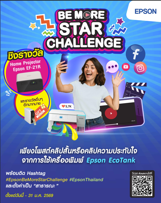 โครงการประกวดคลิปสั้น หรือคลิปความประทับใจในการใช้งาน Epson EcoTank  ขยายเวลารับผลงานถึง 31 มกราคม 2569 เลยจ้า!!!