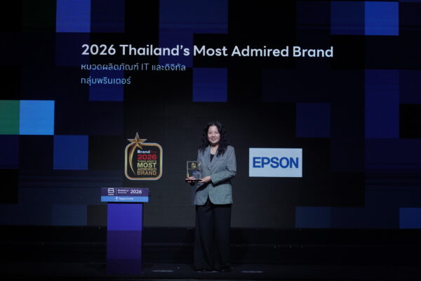 สำหรับรางวัล Thailand’s Most Admired Brand 2026 ซึ่งจัดโดยนิตยสาร BrandAge ถือเป็นหนึ่งในผลวิจัยด้านแบรนด์ที่ได้รับการยอมรับอย่างกว้างขวางในแวดวงการตลาด โดยมีการสำรวจความคิดเห็นจากผู้บริโภคทั่วประเทศกว่า 1,600 ตัวอย่าง ครอบคลุม 12 หมวดสินค้าและบริการ เพื่อสะท้อนแบรนด์ที่ผู้บริโภคเชื่อมั่นมากที่สุดในแต่ละกลุ่มผลิตภัณฑ์ โดยเอปสันได้รับการยกให้เป็น แบรนด์พรินเตอร์อันดับ 1 ในใจผู้บริโภค สะท้อนถึงความไว้วางใจที่ผู้บริโภคมีต่อคุณภาพ เทคโนโลยี และประสิทธิภาพของผลิตภัณฑ์เอปสันมาอย่างต่อเนื่อง
