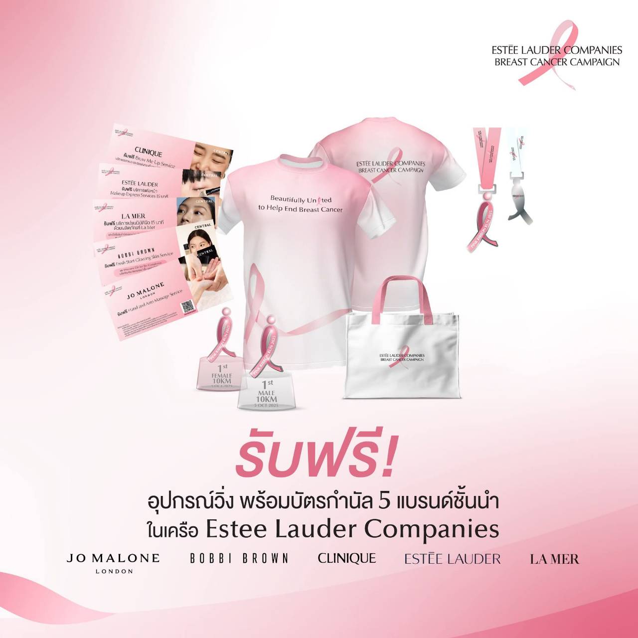 พิเศษสำหรับสาย VIP สามารถรับผลิตภัณฑ์ ESTEE LAUDER Advanced Night Repair Pink Edition มูลค่า 5,100 บาท และพิเศษสำหรับนักวิ่งทุกระยะจะได้รับ Service Voucher บัตรกำนัลบริการพิเศษจาก 5 แบรนด์ความงามชั้นนำ ได้แก่ ESTEE LAUDER, Bobbi Brown, La Mer, Clinique และ Jo Malone London ในเครือ Estee Lauder Companies นักวิ่งทุกระยะสามารถติดต่อรับ Race Kit ในวัน Expo Day วันที่ 27 – 28 กันยายน 2568 เวลา 10.30 – 19.00 น. ณ โซนบิวตี้ ลานชั้น 1 ศูนย์การค้าเซ็นทรัลเวิลด์ (นักวิ่งต้องมารับ Race Pack ภายในวันที่ระบุเท่านั้น ไม่มีบริการจัดส่งทางไปรษณีย์ และสามารถรับแทนกันได้