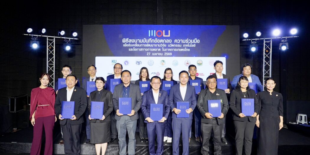ฟาร์มเอ็กซ์โป ผนึกกำลังภาคีเครือข่ายด้านการเกษตรจากภาครัฐ ภาคเอกชน รวมถึงสถาบันการศึกษา ลงนามบันทึกข้อตกลงความร่วมมือ (MOU) ครั้งสำคัญ เพื่อขับเคลื่อนการพัฒนาธุรกิจ เทคโนโลยี ตลอดจนการตลาดในอุตสาหกรรมเกษตรไทยอย่างครบวงจร มุ่งเชื่อมโยงองค์ความรู้ งานวิจัย ต่อยอดสู่นวัตกรรมเพื่อการใช้งานจริง ครอบคลุมในเชิงพาณิชย์ พร้อมยกระดับศักยภาพเกษตรกรไทย ควบคู่การเพิ่มขีดความสามารถในการแข่งขันบนเวทีโลกอย่างยั่งยืน