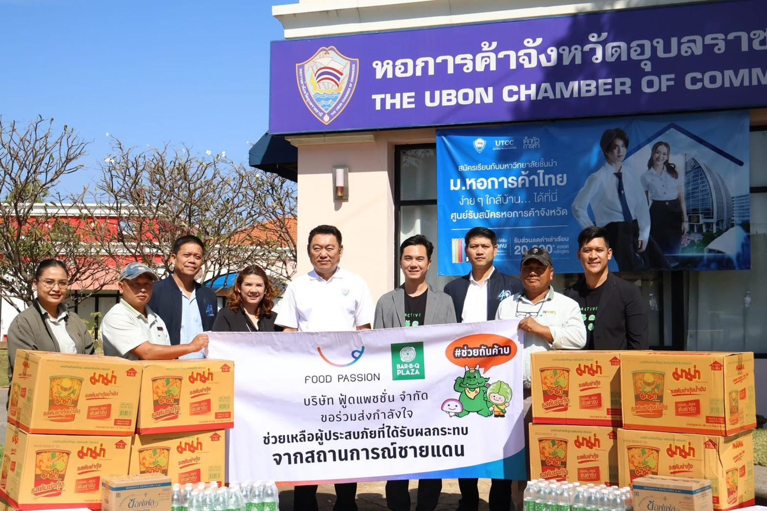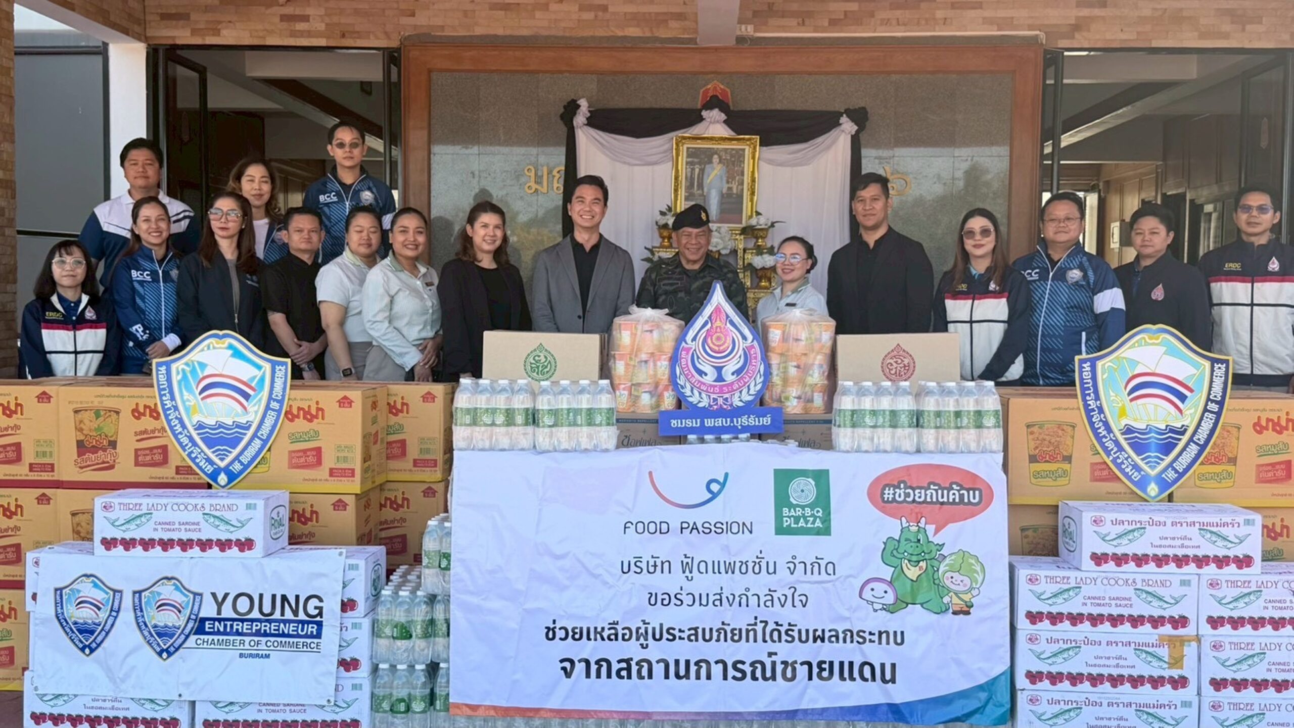 บริษัท ฟู้ดแพชชั่น จำกัด และแบรนด์ร้านอาหารในเครือ บาร์บีคิวพลาซ่า นำโดย คุณเรืองชาย สุพรรณพงศ์ ประธานบริหารสายงานปฏิบัติองค์กร บริษัท ฟู้ดแพชชั่น จำกัด พร้อมด้วย นายรัฐธนินท์ เตชะไชยสิทธิ์ ประธานหอการค้าจังหวัดอุบลราชธานี, นายวิรัตน์ เศรษฐวิพัฒนชัย ประธานหอการค้าจังหวัดสุรินทร์, นางสาวพูลทรัพย์ เทพนคร ประธานหอการค้าจังหวัดบุรีรัมย์ และพนักงานร้านบาร์บีคิวพลาซ่า ร่วมกันลงพื้นที่จังหวัดอุบลราชธานี สุรินทร์ และบุรีรัมย์ เมื่อวันที่ 6 – 7 มกราคม 2569 เพื่อส่งมอบน้ำดื่ม ข้าวสาร อาหารแห้ง และสิ่งของจำเป็น ให้แก่หน่วยทหารประจำพื้นที่ชายแดนและประชาชนที่พักพิงอยู่ในศูนย์อพยพ เพื่อบรรเทาความเดือดร้อนและร่วมส่งกำลังใจ