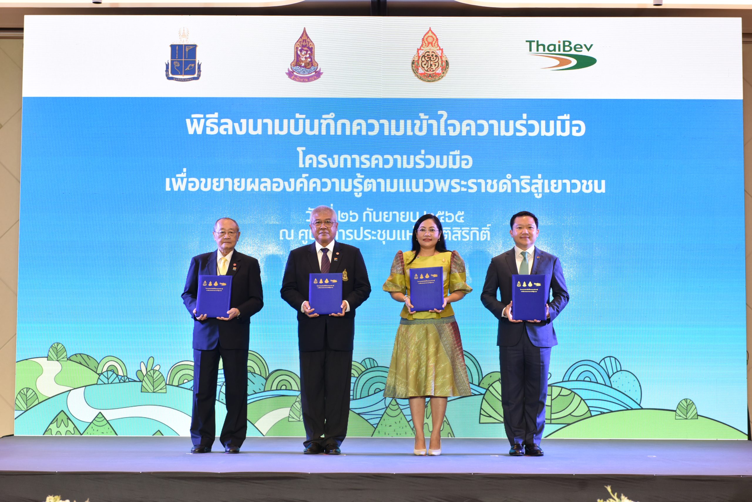 สำนักงานมูลนิธิชัยพัฒนา สำนักงานคณะกรรมการพิเศษเพื่อประสานงานโครงการอันเนื่องมาจากพระราชดำริ (สำนักงาน กปร.) สำนักงานคณะกรรมการการศึกษาขั้นพื้นฐาน (สพฐ) และ บริษัท ไทยเบฟเวอเรจ จำกัด (มหาชน) ลงนามข้อตกลงความร่วมมือ (MOU) ในโครงการขยายผลองค์ความรู้โครงการตามแนวพระราชดำริ เพื่อให้เยาวชนและประชาชนทั่วไปสามารถนำองค์ความรู้ตามแนวพระราชดำริ มาปรับเปลี่ยนแนวทางในการดำเนินชีวิตให้มีความเป็นอยู่ดีขึ้น