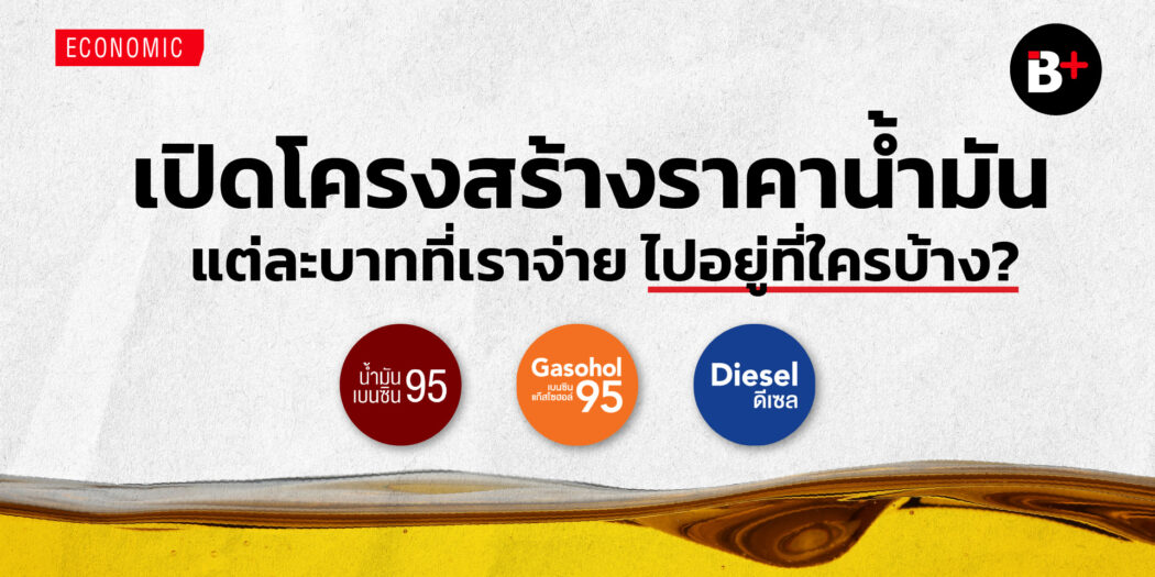จาก Infographic นี้จะเห็นได้ว่า ราคาแรกที่เราต้องจ่ายเวลาเติมน้ำมันคือต้นทุนสินค้า หรือราคาหน้าโรงกลั่นซึ่งแต่ละชนิดจะอ้างอิงจากราคาตลาดสิงคโปร์ ซึ่งเป็นตลาดนำเข้าใหญ่ โดยราคาก็จะขึ้นลงตามราคาน้ำมันดิบโลก