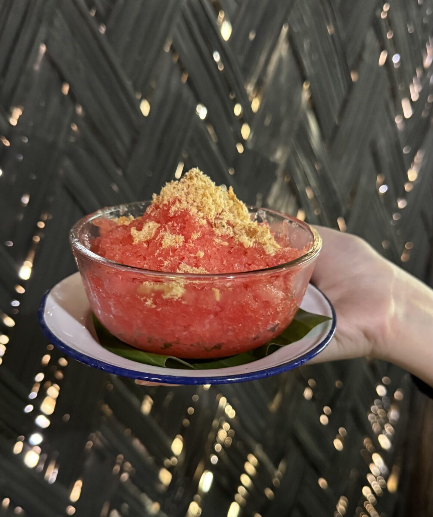 หรือจะเป็น ‘ไอติมเกล็ดน้ำแข็งแตงโมปลาแห้ง’ ที่ต่อยอดมาจากเมนูคลายร้อนของคนโบราณ ด้วยการใช้แตงโมเนื้อหวานฉ่ำมาทำเป็นไอติมเกล็ดน้ำแข็ง เสิร์ฟคู่กับปลาช่อนย่างบดแห้ง ทานพร้อมกันแล้วได้ทั้งความหวานสดชื่นจากแตงโม และปลาแห้งหอม ๆ ที่เข้ากันอย่างไม่น่าเชื่อ