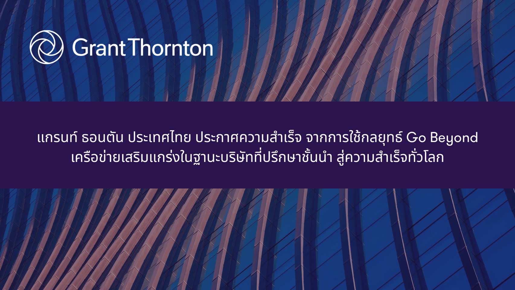 นายเอียน พาสโค ประธานเจ้าหน้าที่บริหารและหุ้นส่วนผู้จัดการ แกรนท์ ธอนตัน ประเทศไทย กล่าวว่า “ผมรู้สึกภาคภูมิใจในความสำเร็จของทีมงานในปีนี้ การเติบโตถึงร้อยละ 12.3 เป็นเครื่องพิสูจน์ถึงความเข้มแข็ง ความสามารถ และความทุ่มเทของบุคลากรของเรา รวมถึงความไว้วางใจที่ลูกค้ามีต่อแกรนท์ ธอนตัน เราทำงานร่วมกันกับทั่วทั้งภูมิภาคเอเชียแปซิฟิก เพื่อเสริมสร้างความสัมพันธ์และยกระดับความร่วมมือข้ามพรมแดนในด้านคุณภาพ ซึ่งเป็นปัจจัยสำคัญในการเชื่อมโยงศักยภาพของเครือข่ายให้แน่น