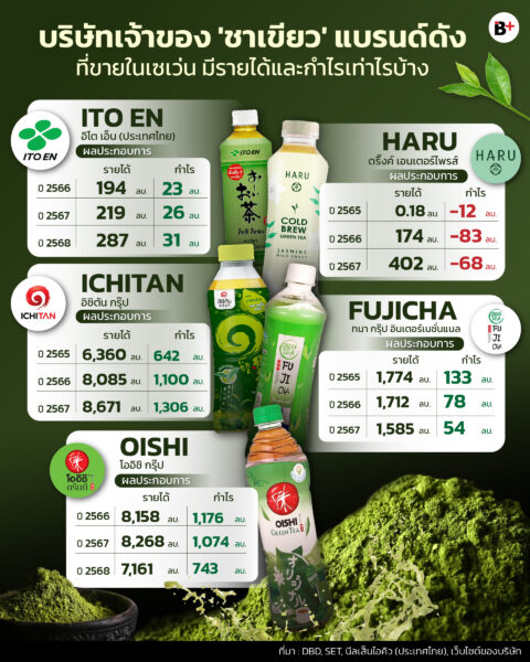 หากพูดถึงแบรนด์ชาพร้อมดื่มสัญชาติไทยที่หลายคนคุ้นเคยที่สุด ชื่อของ ICHITAN มักถูกพูดถึงเสมอ บริษัท อิชิตัน กรุ๊ป ปี 2565 บริษัทมีรายได้ 6,360 ล้านบาท และกำไร 642 ล้านบาท ปี 2566 รายได้เพิ่มเป็น 8,085 ล้านบาท กำไรขยับเป็น 1,100 ล้านบาท และในปี 2567 รายได้อยู่ที่ 8,671 ล้านบาท กำไร 1,306 ล้านบาท